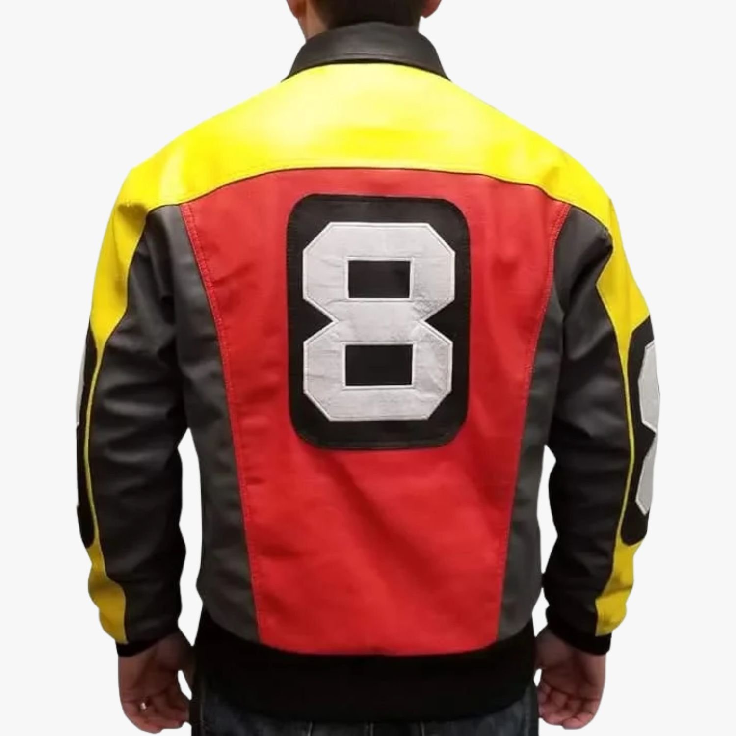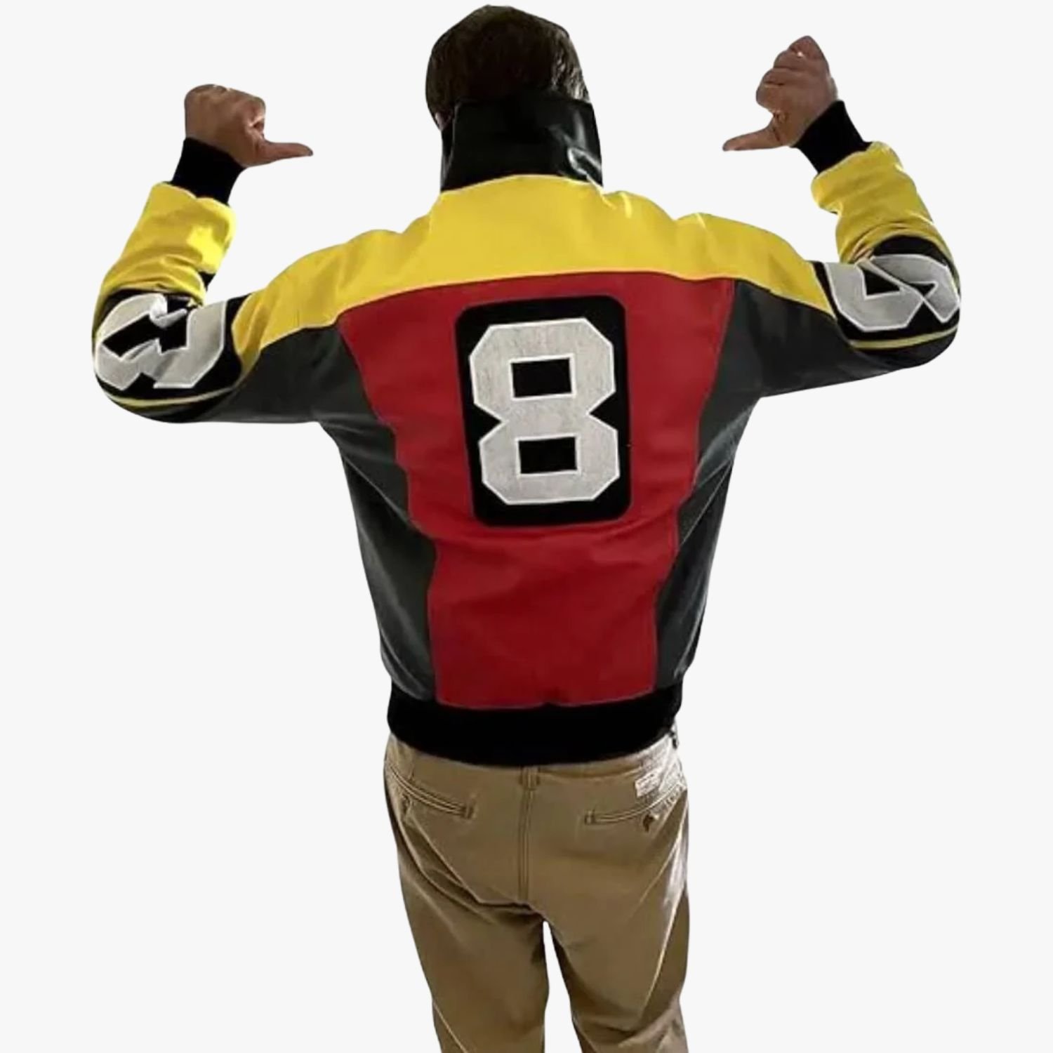 Patrick Warburton Seinfeld David Puddy 8 Ball Bomber Leather Jacket