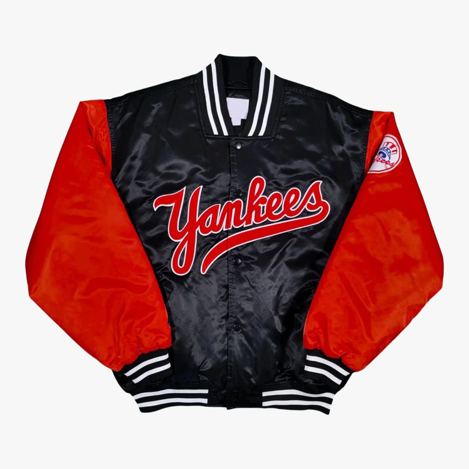 90’s NY Yankees Black and Red Satin Jacket For Men And Women