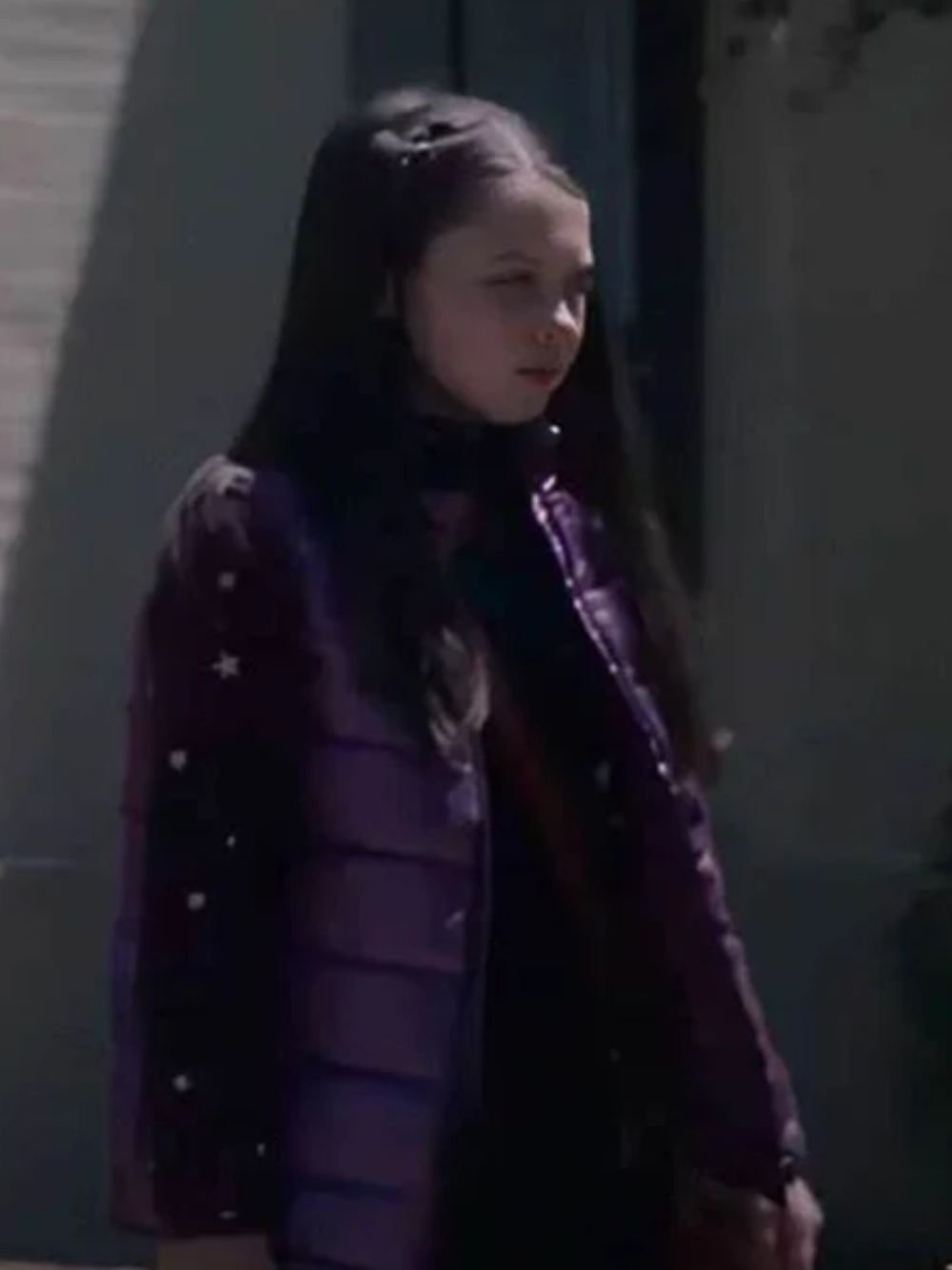 Violet McGraw A Christmas Mystery 2022 Violet Pierce Purple Puffer Vest