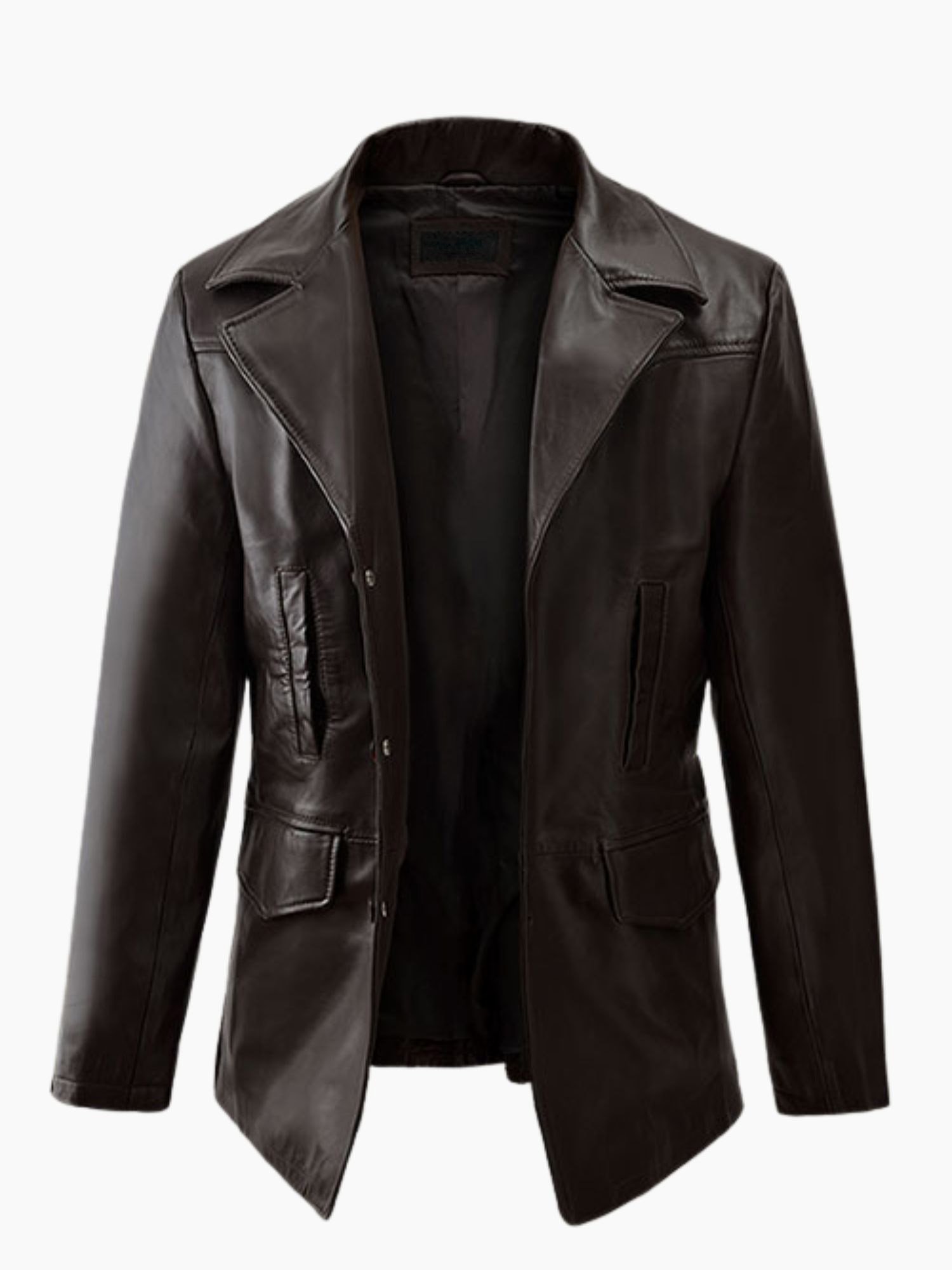- Style: Classic Leather Trench Coat