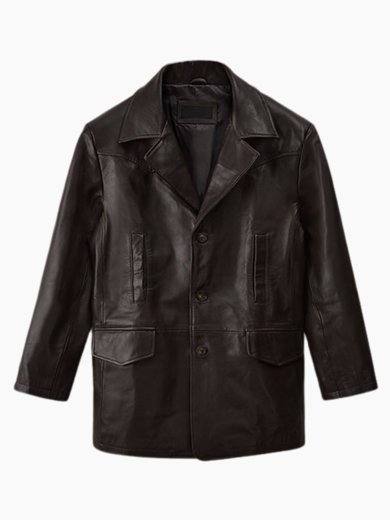 Its full-length design offers excellent coverage and warmth, making it ideal for fall and winter seasons. Inside, a soft inner lining ensures comfort during extended wear, whether you’re heading to work, an event, or a casual city outing. Stylish, iconic, and timeless this men’s leather trench coat by Movie Jackets Hub brings Hollywood-inspired charm to modern men’s fashion.