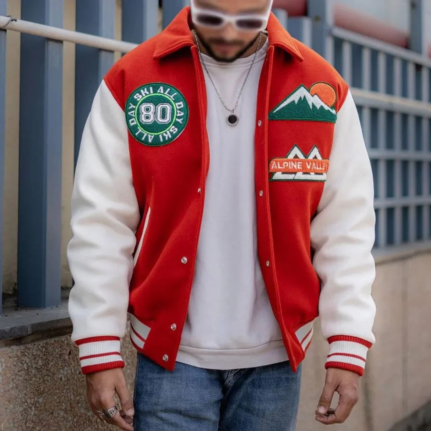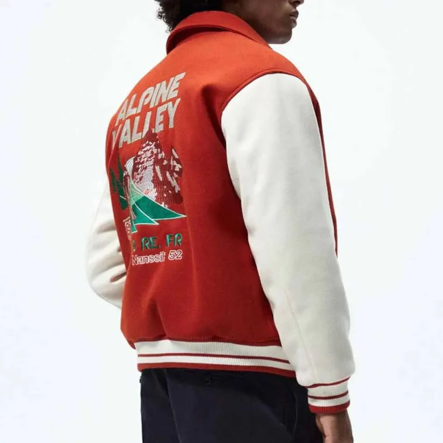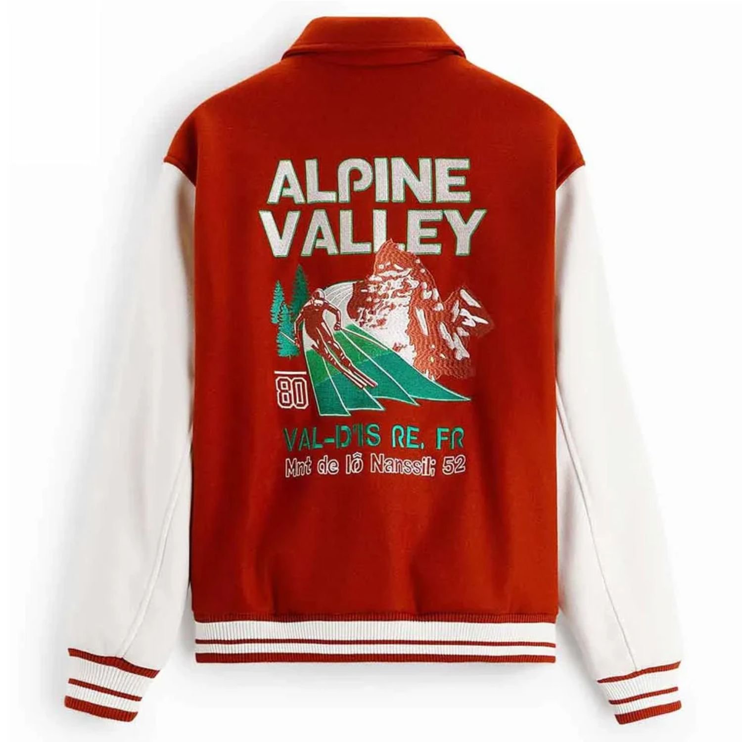 Bring back the vintage charm with the All Day Ski 80 Varsity Jacket, a perfect blend of retro ski vibes and modern streetwear style. Designed for both men and women, this jacket captures the energy of the 1980s with a bold and sporty look that stands out on the slopes or in the city. Crafted from premium wool with contrasting genuine leather sleeves, it offers the ideal mix of warmth, durability, and timeless appeal. The rib knit collar, cuffs, and waistband ensure a snug fit to keep the cold out, while the soft inner lining delivers all day comfort. Featuring embroidered “All Day Ski 80” patches, snap button front closure, and functional pockets, this varsity jacket by Movie Jackets Hub combines authentic detailing with everyday practicality. Whether you’re hitting the mountains, traveling, or just rocking a casual street look, this retro varsity jacket guarantees effortless style and comfort.