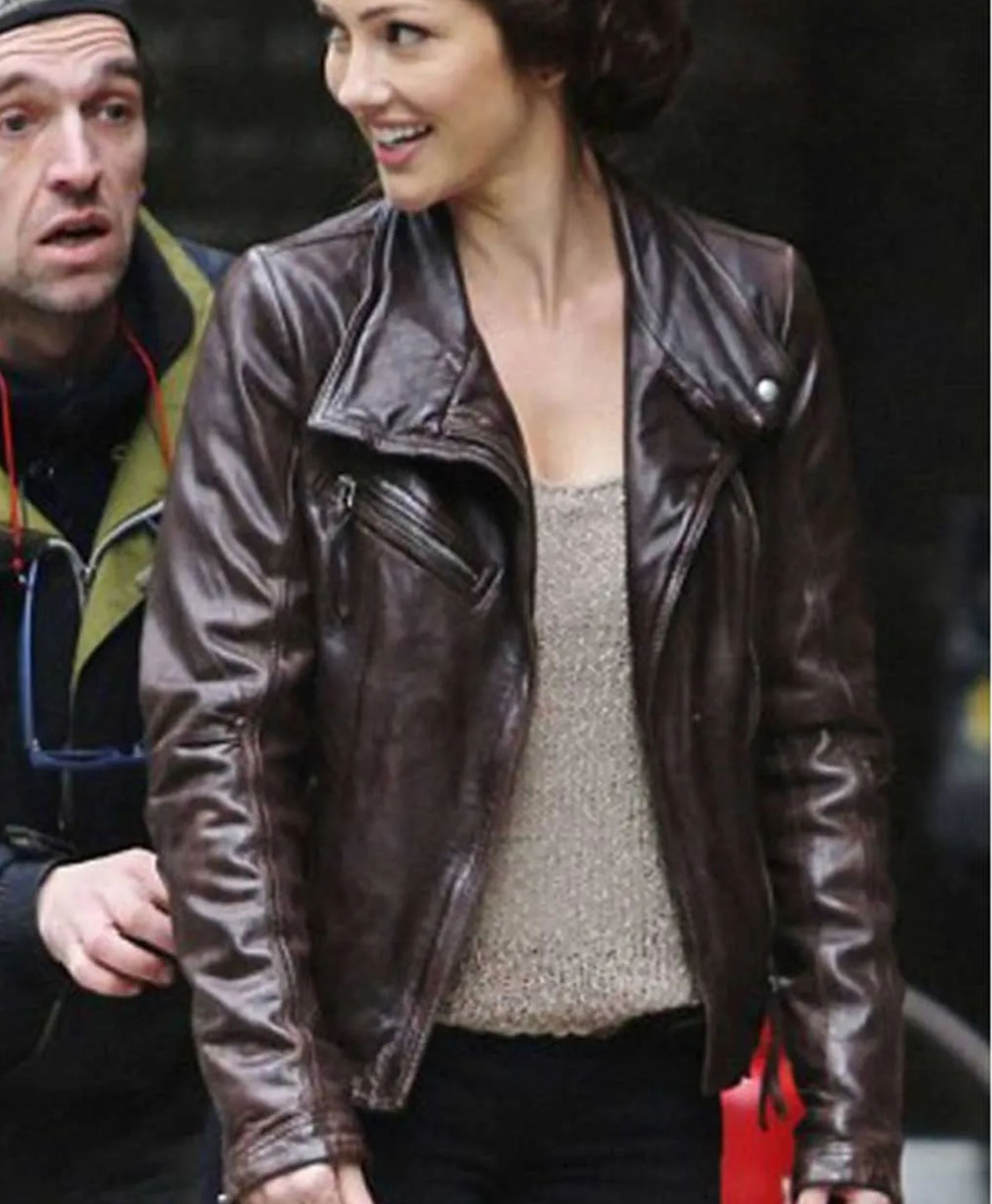 Movie Jackets Hub bring the same featured jacket which is made with quality and 100% real leather stuff and it contains Viscose lining interior for your comfortable wearing. It is made with remarkable stitching. Minka Kelly Almost Human leather jacket has a brown color and had great style with lapel style collar which comes with snap button fastening feature. Valerie Stahl brown leather jacket has the full-length sleeve attached with open hem cuffs. It contains 4 pockets where two are a front zipper, and two waists jetted pockets are available as per the real jacket.