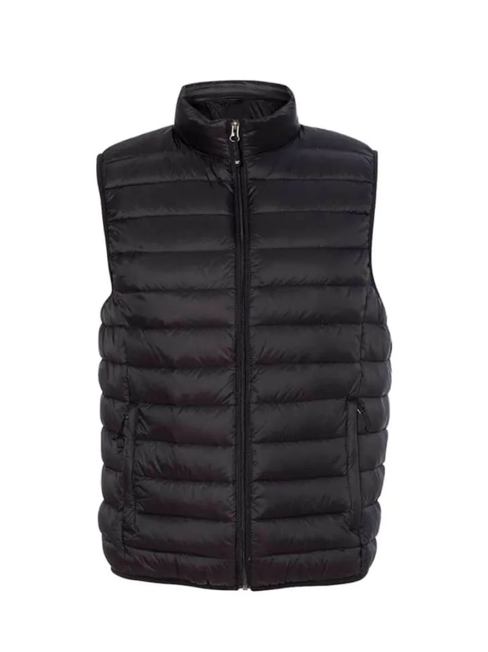 Designed with practicality in mind, this sleeveless vest features two outside waist pockets to store essentials securely. The front zipper closure allows easy wear and a sleek silhouette, while the padded yet plain design adds a contemporary touch. Finished in classic black, it pairs effortlessly with jeans, sweaters, or layered outfits for versatile styling options.