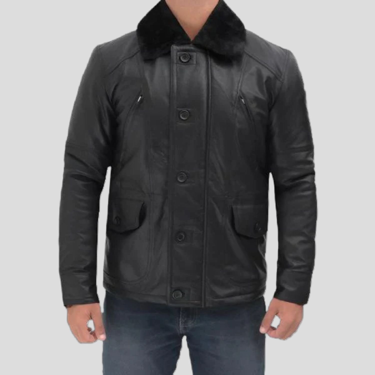 The jacket is made from high-quality leather. Its inner is lined with Shearling Fur, keeping you extra warm. Multiple pockets are being given, keeping the convenience factor in mind. It is designed as Aviator Shearling Fur Jacket. The beautiful jacket has a turn down style collar. Buttoned cuffs are expertly aligned with the sleeves. The front is complemented with a stylish buttoned closure.