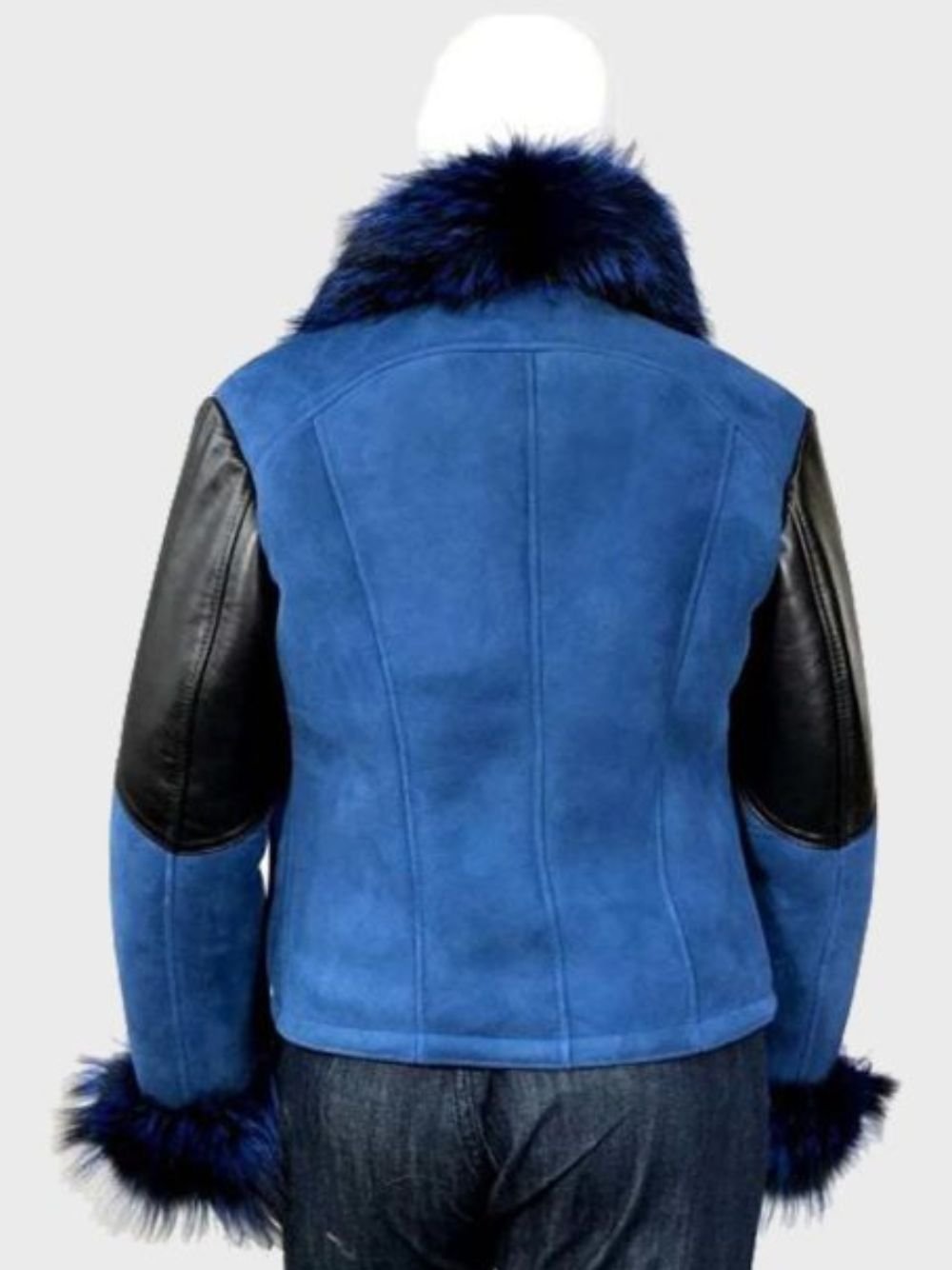 Anna Blue Faux Fur Sheepskin Shearling Suede Leather Jacket