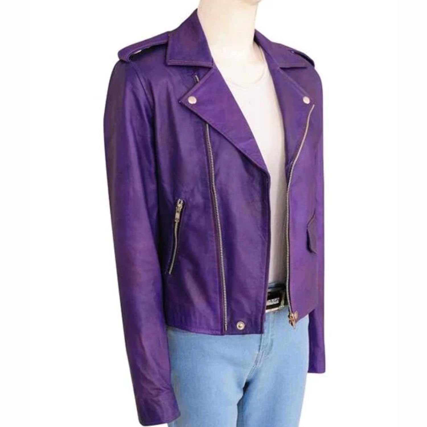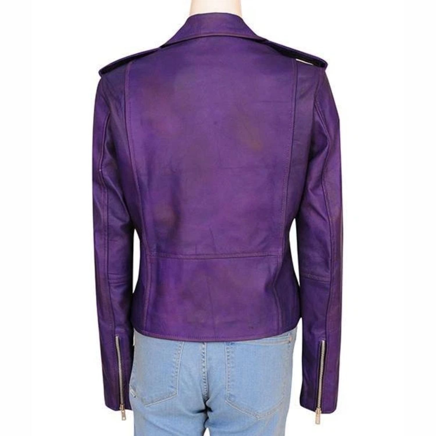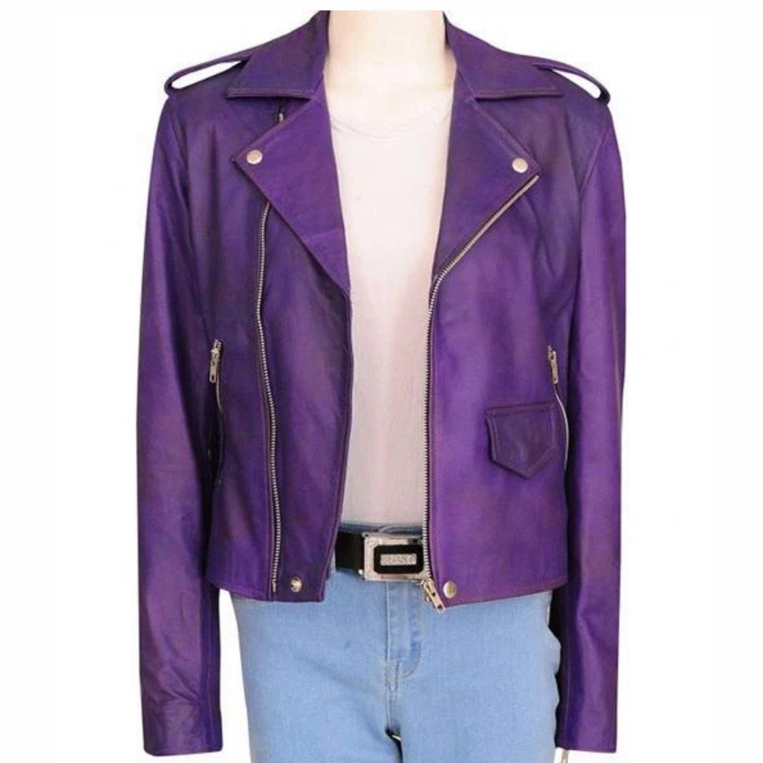 Daphne Kluger Real Leather Jacket has five pockets, three are placed at the front and two pockets are inside the jacket. Overall this jacket has short body length and purple color which actually make it a must piece of your wardrobe.