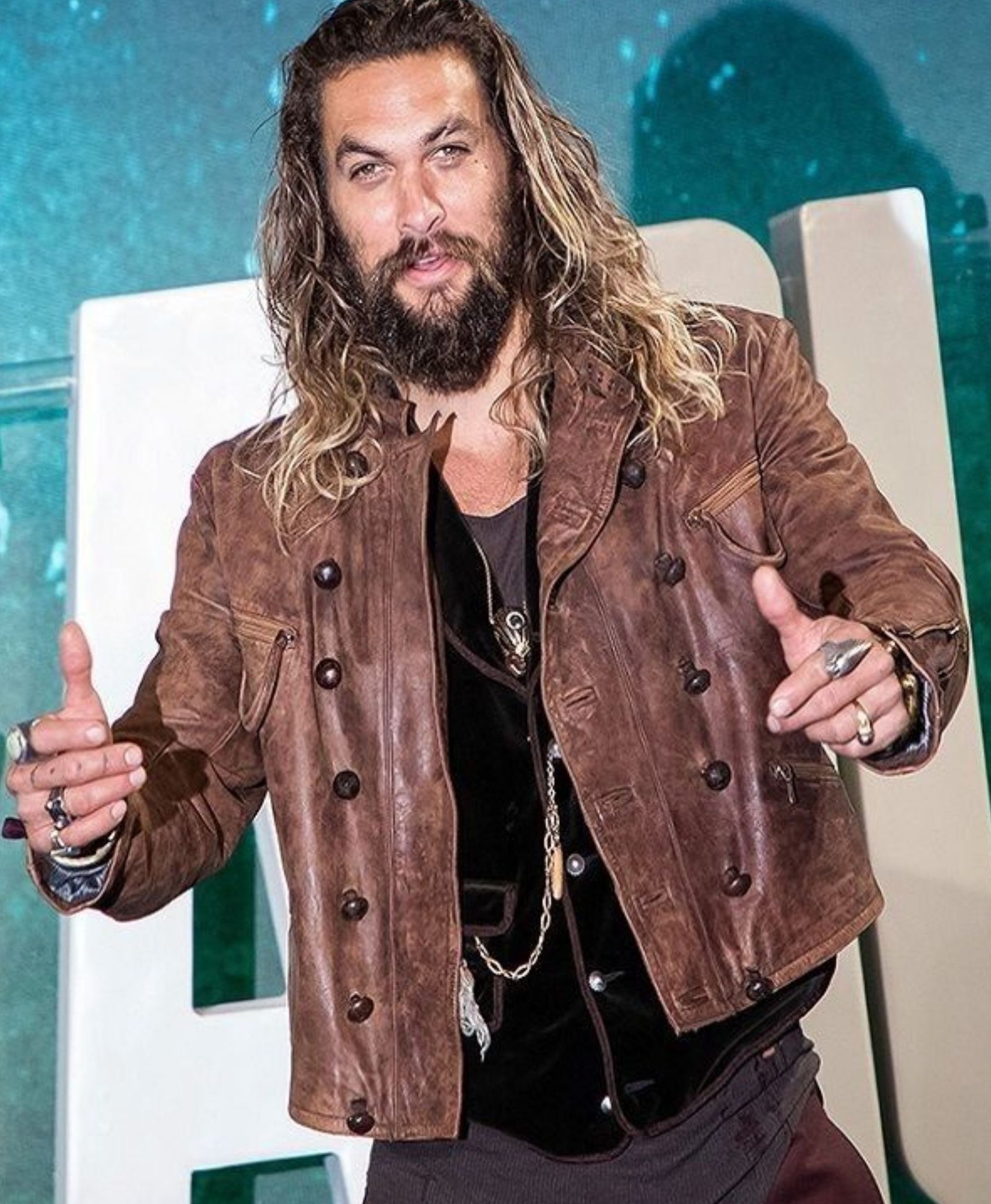 Actor Jason Momoa playing a role Arthur Curry, A half-Atlantean/half-human who is Inevitable to be king of the undersea nation of Atlantis. Aquaman leads his peoples to step forwards against his brother Orm. Who wants to unite the seven kingdoms against the Surface World. A wonderful Brown Leather Jacket Inspired by the outfit of superhero Aquaman. It looks similar to the Jacket of Actor Jason Momoa.