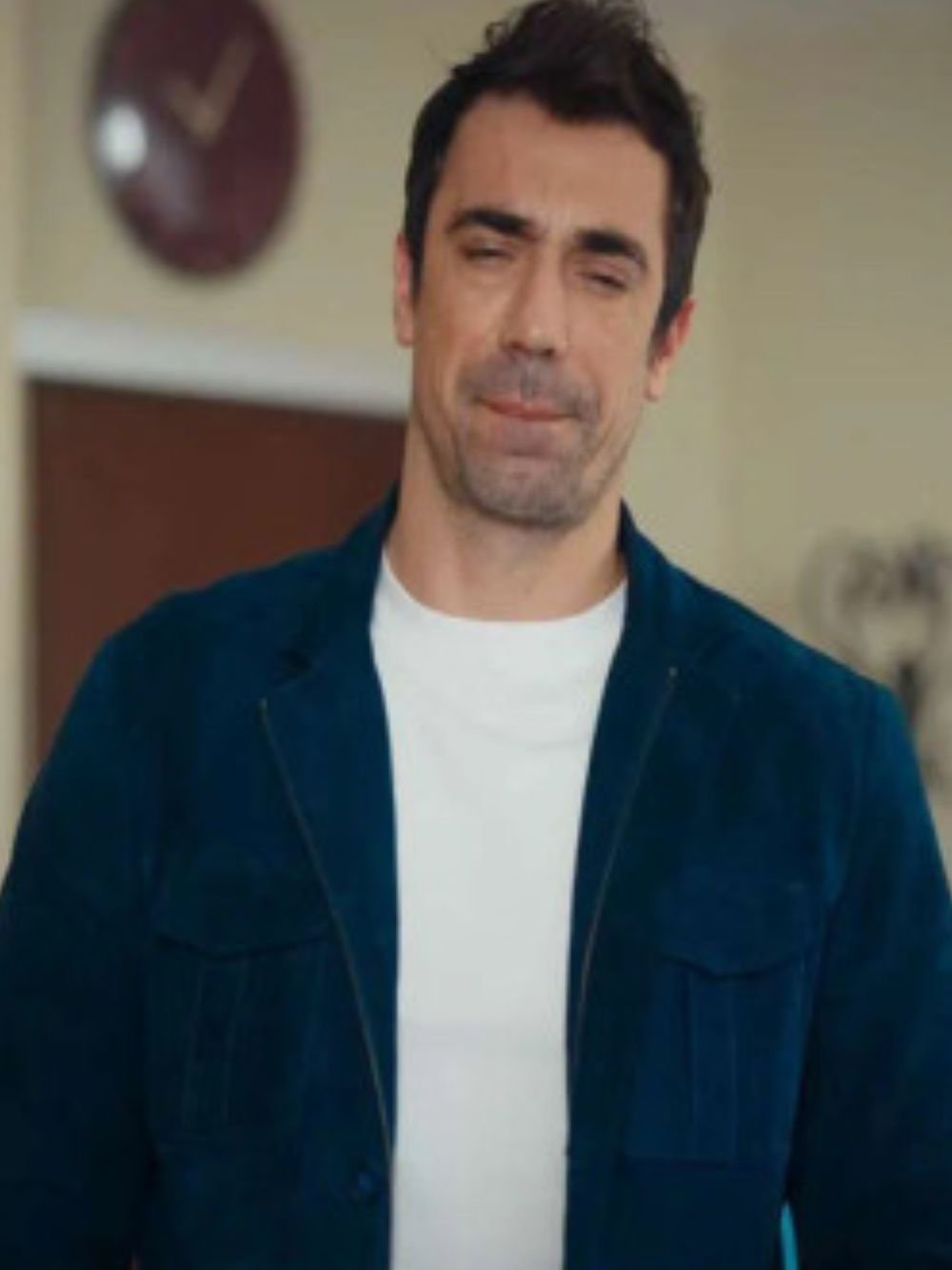 Kenan Sezgin TV Series As the Crow Flies 2023 Ibrahim Celikkol Blue Suede Jacket On Sale