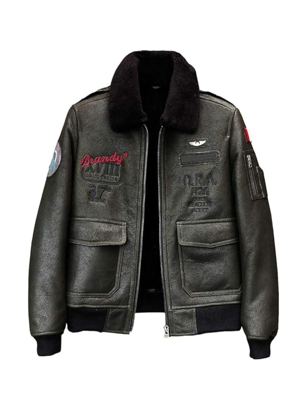 The Mens Ashking Black Brandy Shearling Collar G-1 Bomber Suede Leather Jacket is meticulously constructed from the highest grade of suede leather and premium sheepskin. Suede is renowned for its soft, velvety texture and its ability to offer a more refined, matte appearance compared to traditional polished leather. To ensure that this jacket performs as well as it looks, the interior is beautifully fabricated with authentic shearling fur material. This natural lining provides an unparalleled level of insulation, trapping body heat to keep you warm during the biting cold of winter, while remaining breathable enough for comfortable all-day wear.