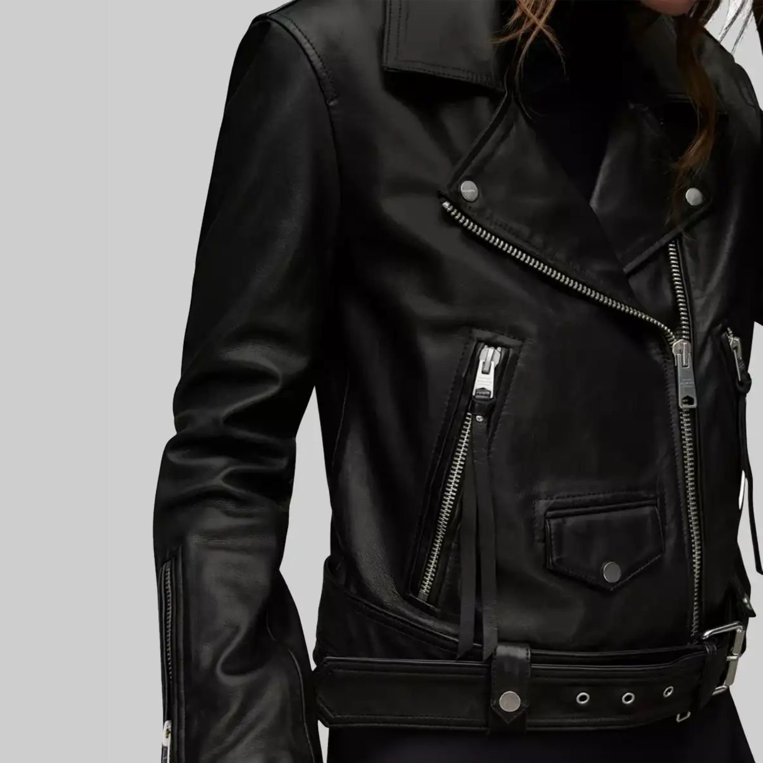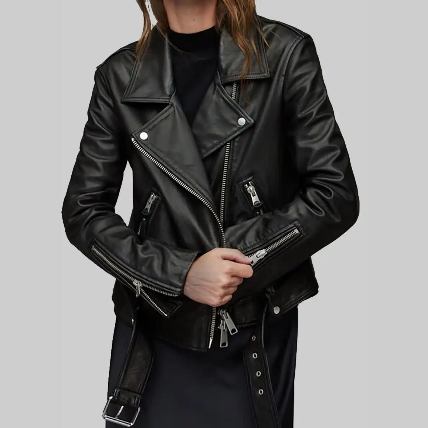 American singer Ashley Roberts Black Biker Leather Jacket For Sale