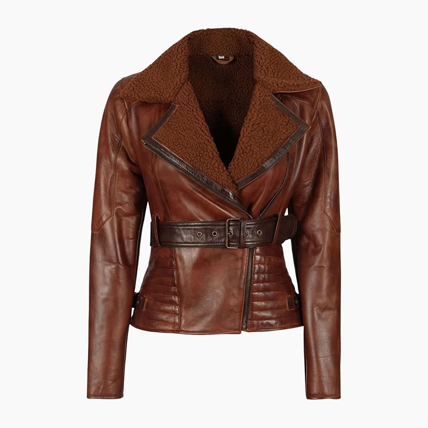 When the temperature drops, the Asymmetrical Brown Shearling Leather Jacket becomes your ultimate style sanctuary. Unlike standard synthetic coats, this jacket utilizes genuine sheepskin leather and authentic fur, allowing for natural breathability while locking in body heat. The plush shearling spill at the collar and cuffs isn’t just a design choice it’s a hallmark of high-end craftsmanship that frames your silhouette with a touch of rugged luxury.