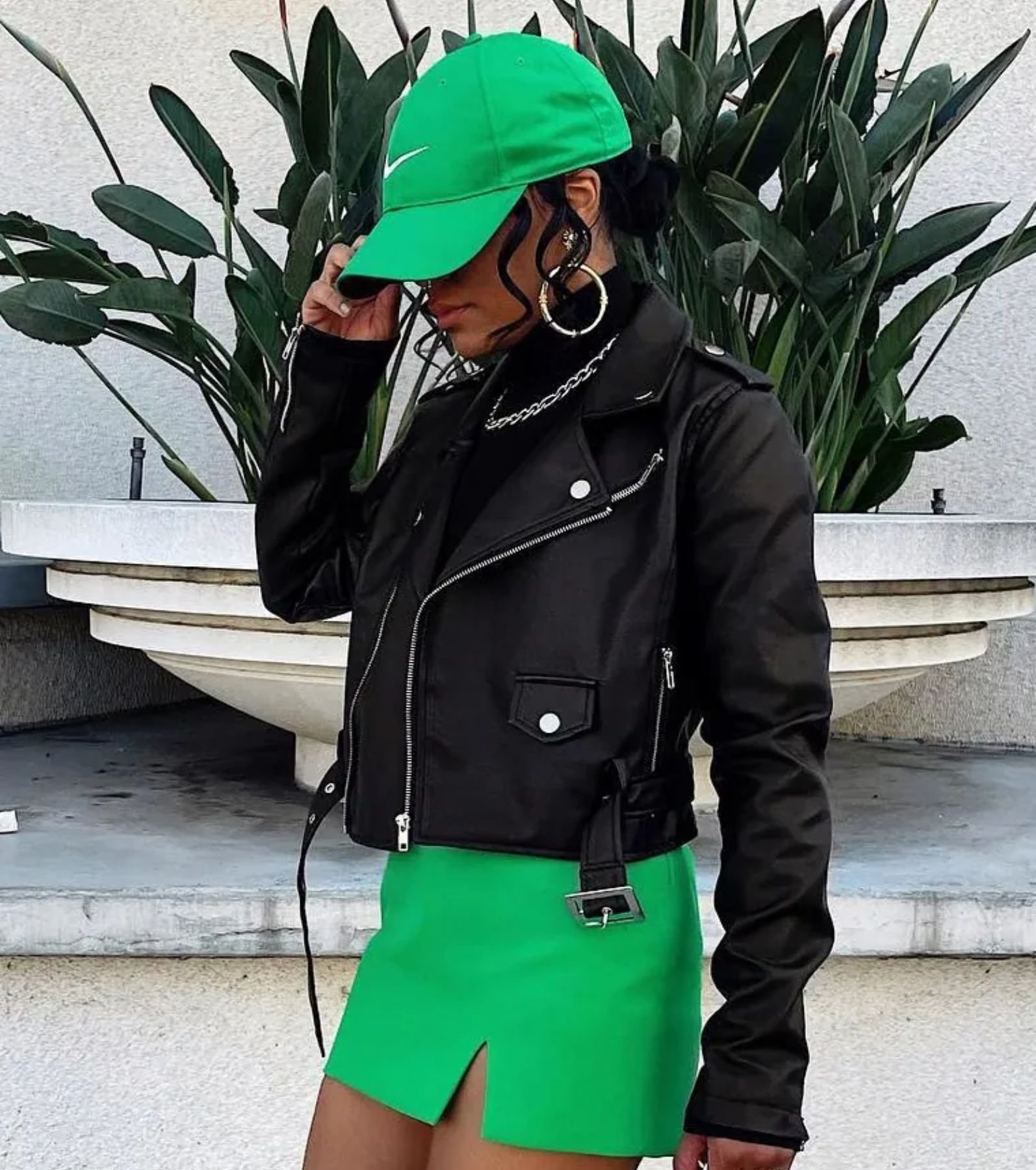 Love the bold attitude of this jacket. It’s cropped just right and feels super soft. Perfect for concerts or casual nights out.