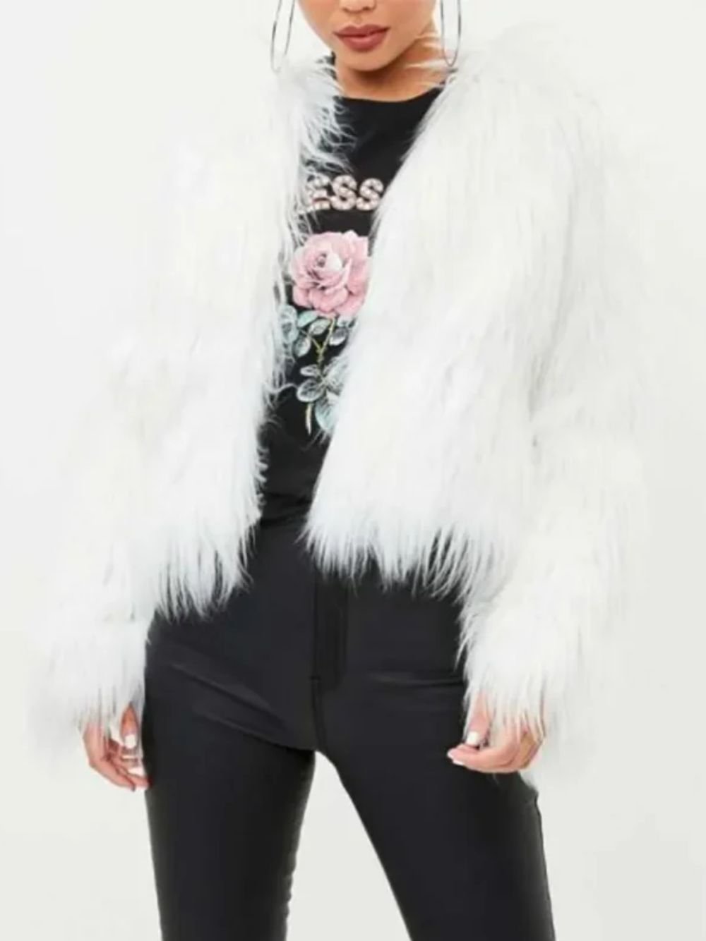 Crafted from premium faux fur, the white jacket delivers warmth without sacrificing sophistication—perfect for chilly nights in New York, winter festivals in Chicago, or holiday parties in Los Angeles. The plush texture feels incredibly soft and cozy, while the dazzling white shade offers that “celebrity entrance” effect every time you step outside. Whether you’re dressing up for a special event or simply elevating your everyday street style, this jacket makes your outfit instantly unforgettable.