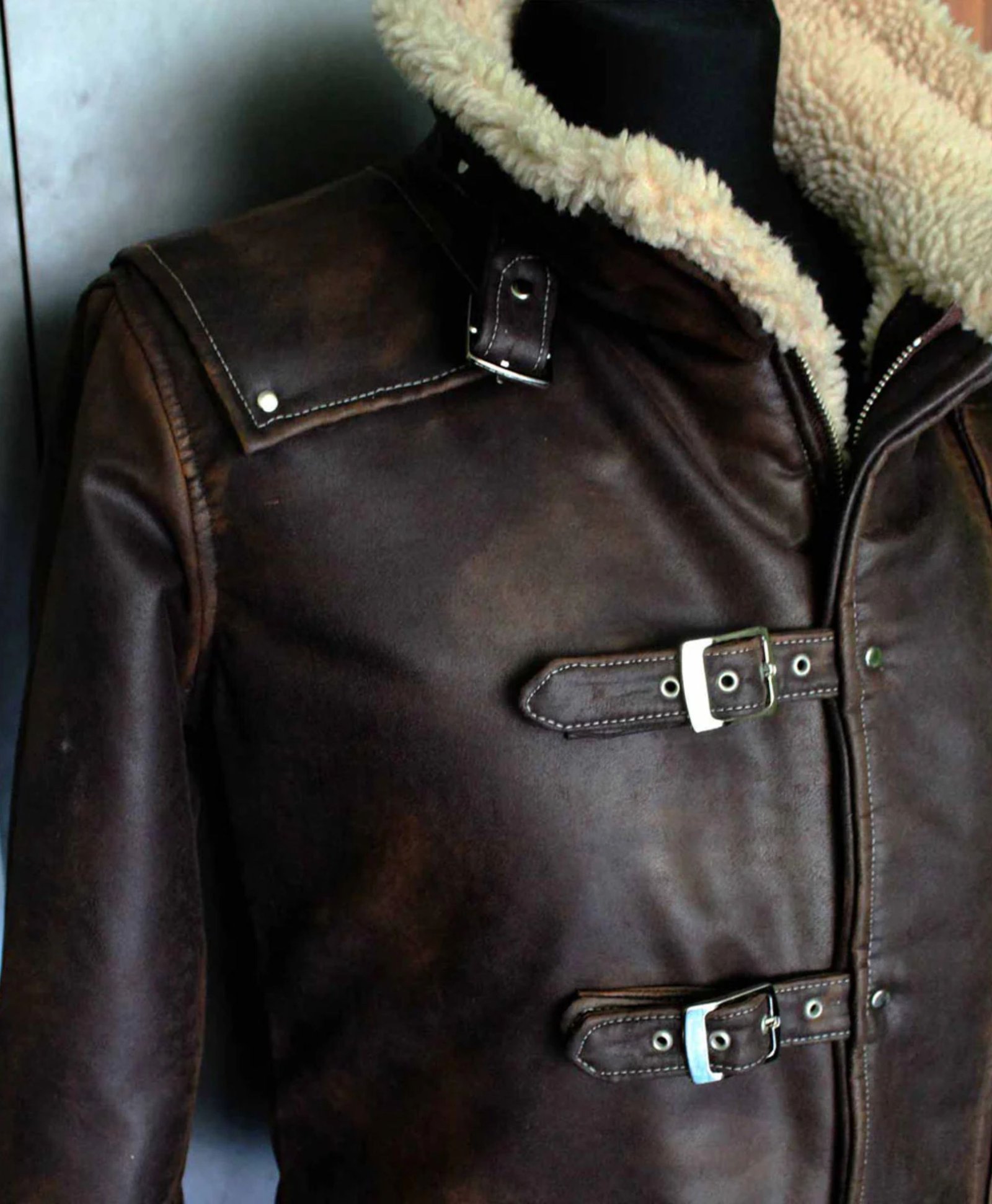 Crafted from high-quality genuine leather and lined with soft faux shearling, this jacket by Movie Jackets Hub offers exceptional warmth, comfort, and durability. The snap-tab zipper closure and buckle belt front detail create a structured, combat-ready look a nod to BJ Blazkowicz’s signature military style.