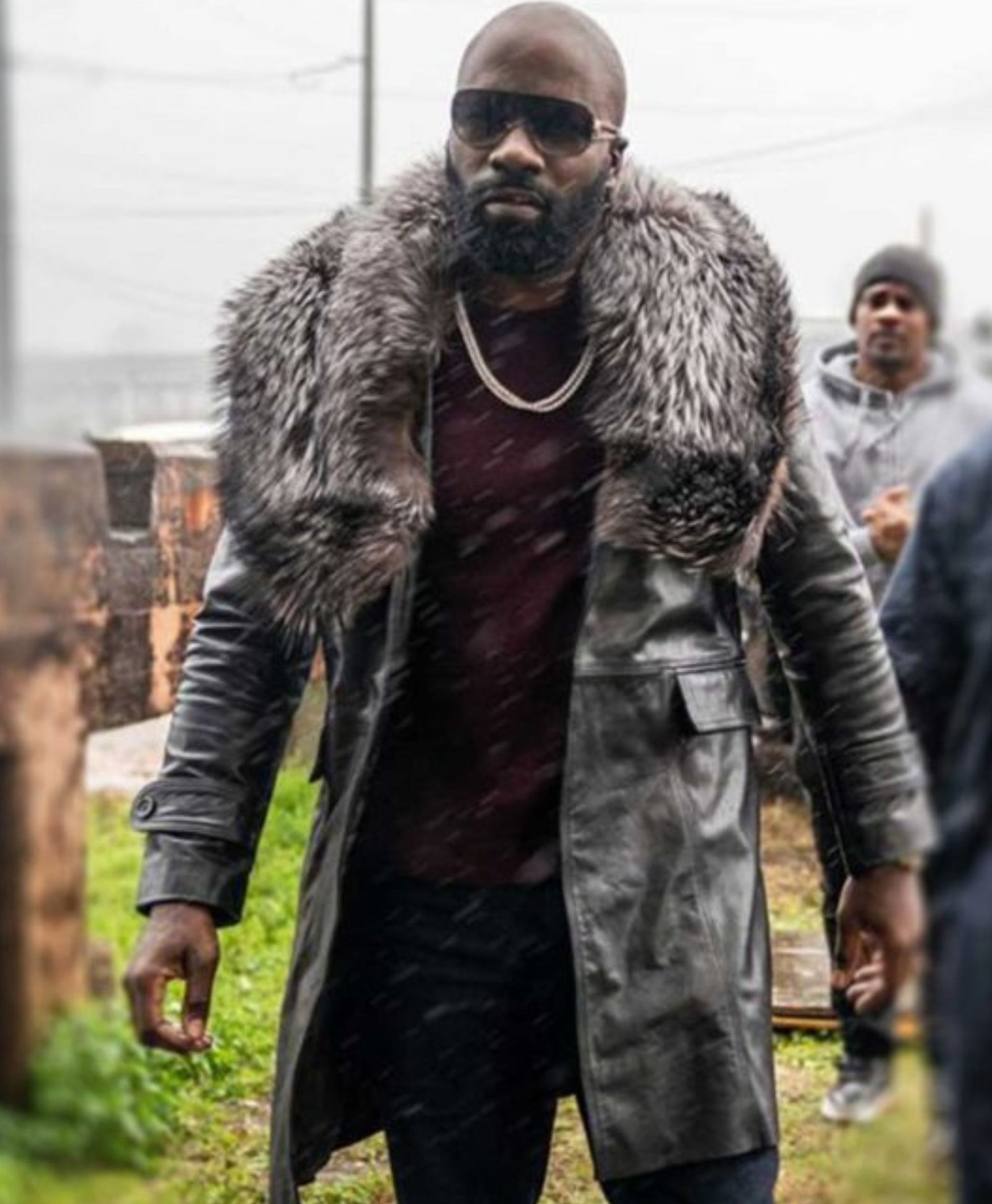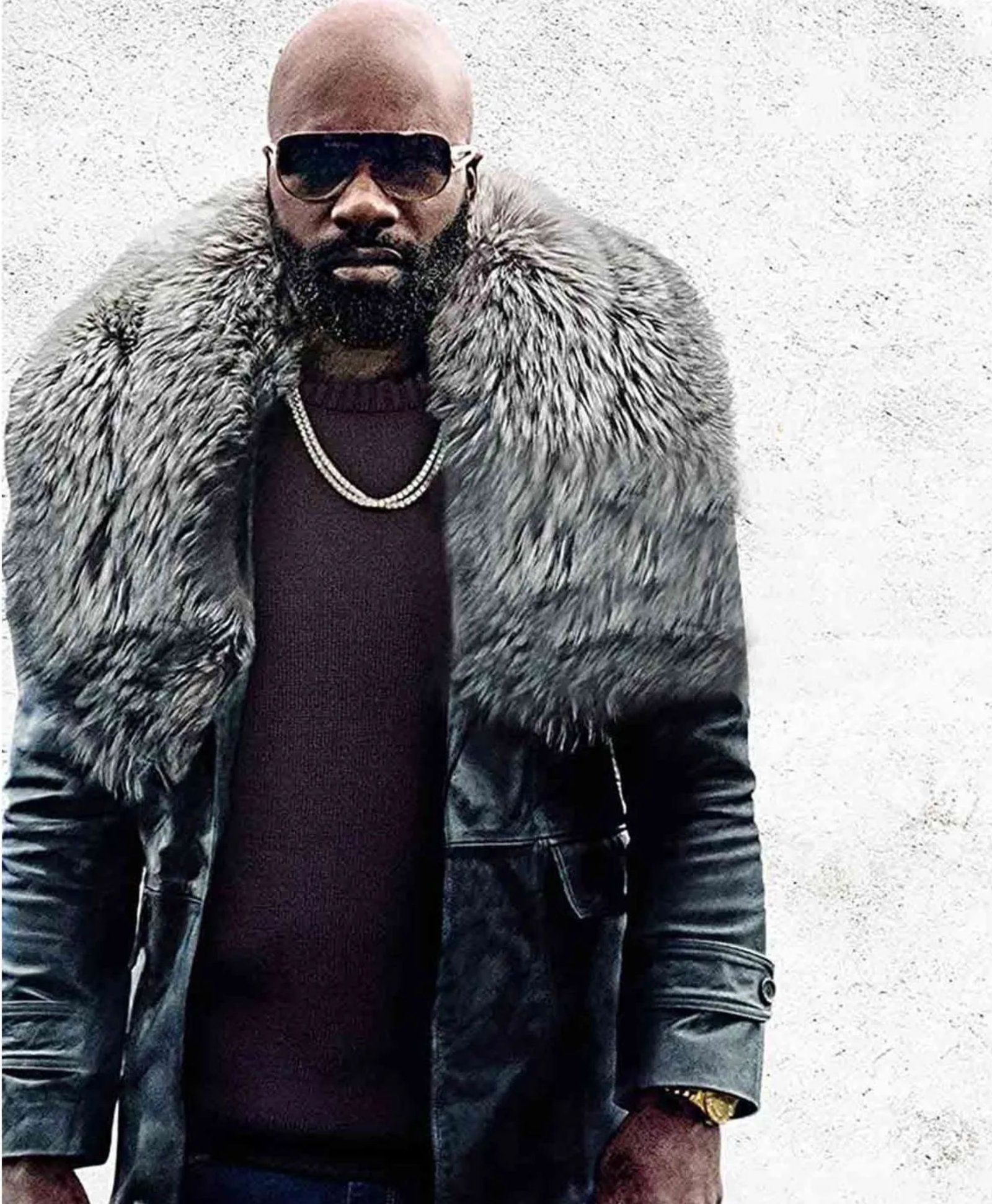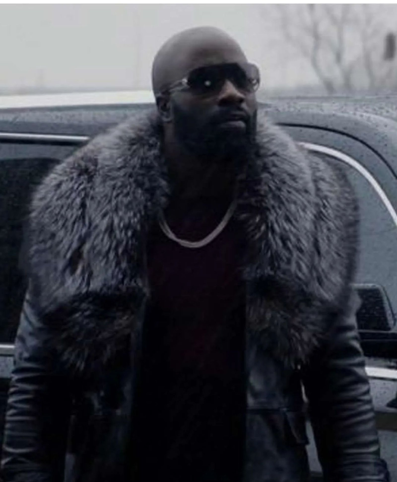 Black and Blue Mike Colter Black Leather Darius Shearling Fur Coat