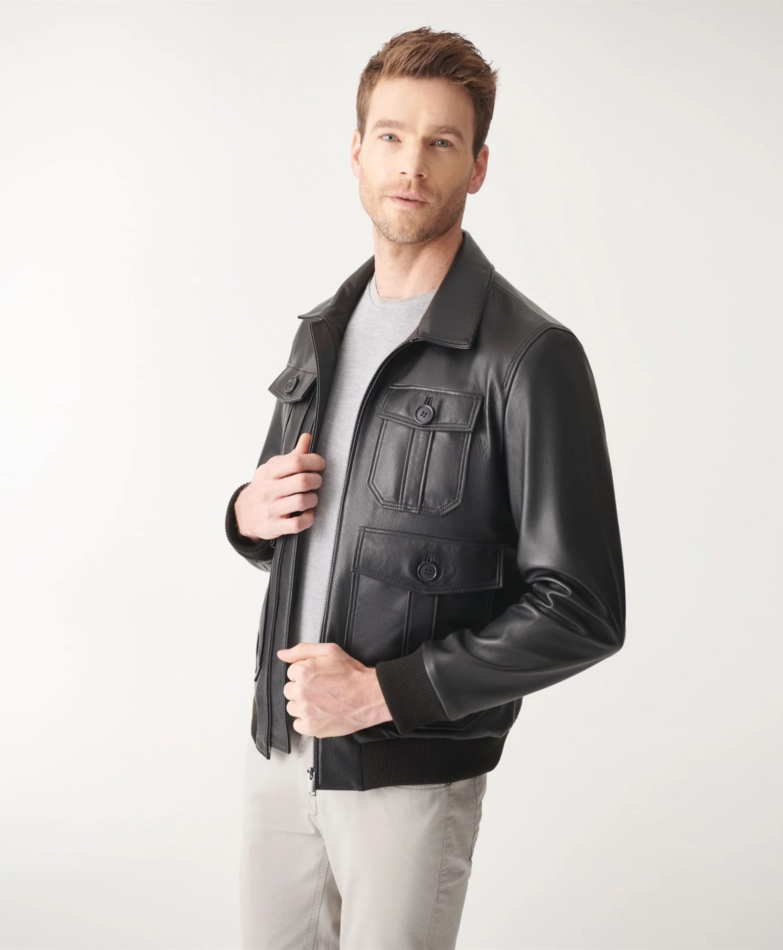 Crafted from premium leather this Black College Leather Jacket by Movie Jackets Hub offers a soft and comfortable feel while maintaining long lasting strength. The tricot detail adds a distinct touch that enhances the overall design giving it a polished and standout appearance. The jacket includes a practical pouch pocket detail that provides quick access for carrying essentials like your phone or wallet. A secure chest pocket detail makes it easy to store smaller items while keeping them safe and easily reachable throughout the day.