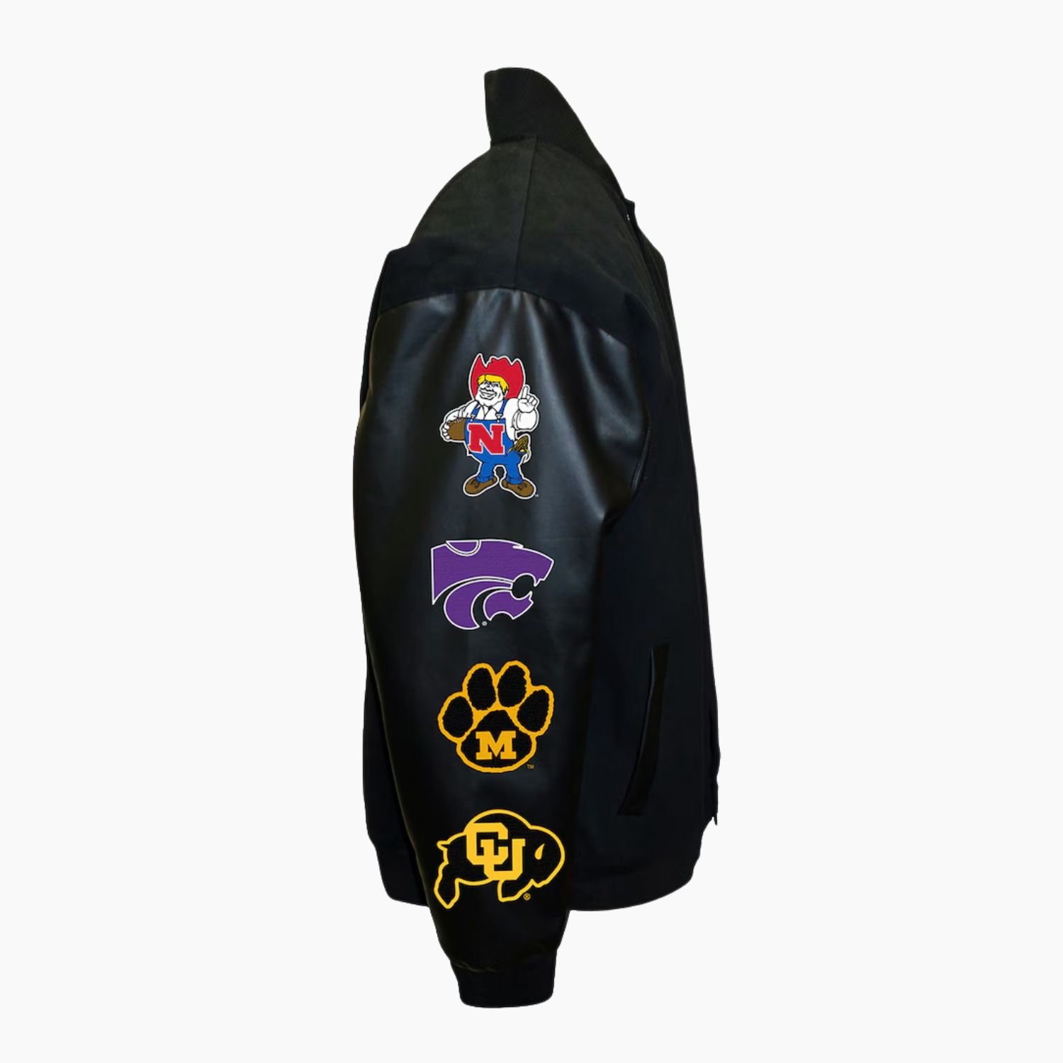 The attention to detail in this sports-inspired design is second to none. The snap button-style closure on the front offers a secure and timeless look, while the high-quality leather sleeves add a layer of ruggedness and luxury. Two spacious side waist pockets provide a convenient place for your phone and keys or a quick warm-up for your hands. With top-quality stitching throughout and a focus on the iconic Big 8 era, this jacket by Movie Jackets Hub is a must-have for the dedicated Sooner fan. Available in all sizes with custom options, it’s a tailored tribute to a powerhouse program.