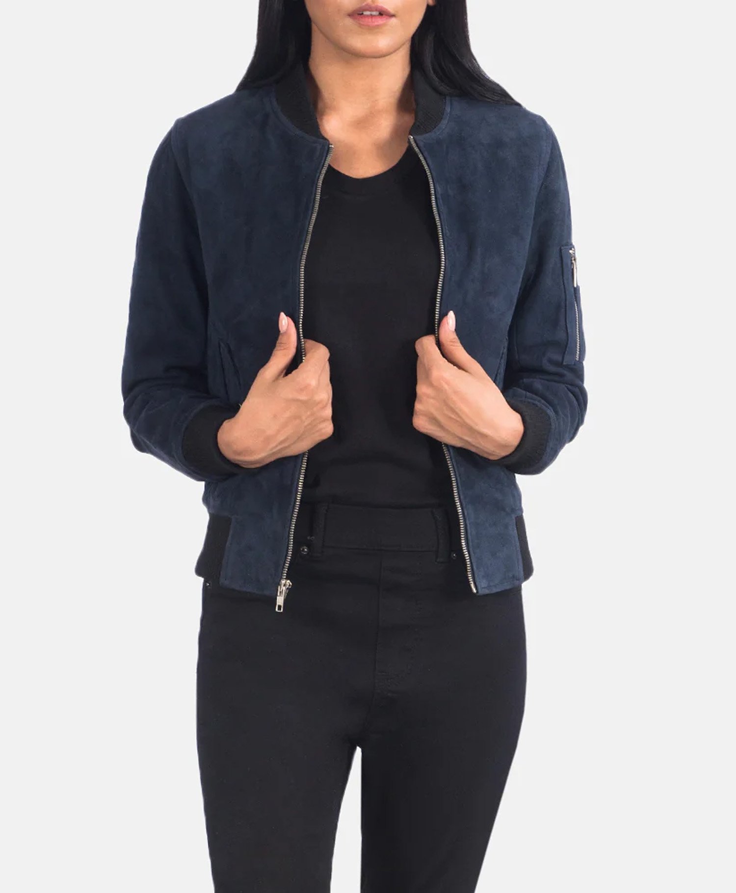 Redefine your wardrobe with the Blue Suede Bomber Jacket. Its premium suede texture and sleek bomber silhouette make it a standout piece for anyone who values timeless fashion with a contemporary edge. Crafted from high-quality suede, this jacket exudes elegance and comfort. The deep blue shade adds a refined touch, making it perfect for casual outings or smart-casual events. Enjoy a soft, luxurious feel with a design that stands the test of time. Pair the Blue Suede Bomber Jacket by Movie Jackets Hub with jeans for a laid-back look or layer it over a button-up shirt for a polished outfit. Its ribbed cuffs and hemline, along with a zippered front, offer functionality without compromising style.
