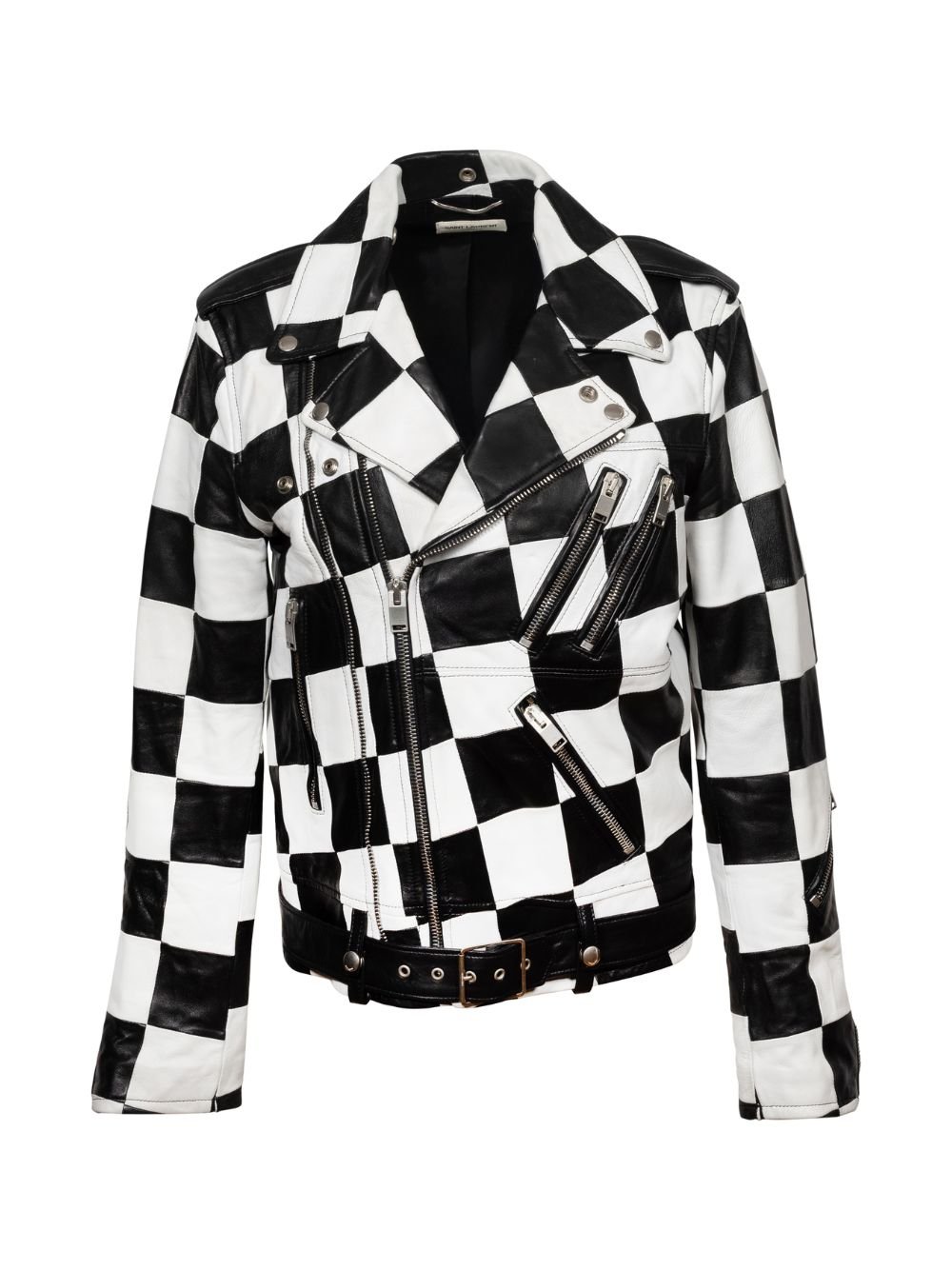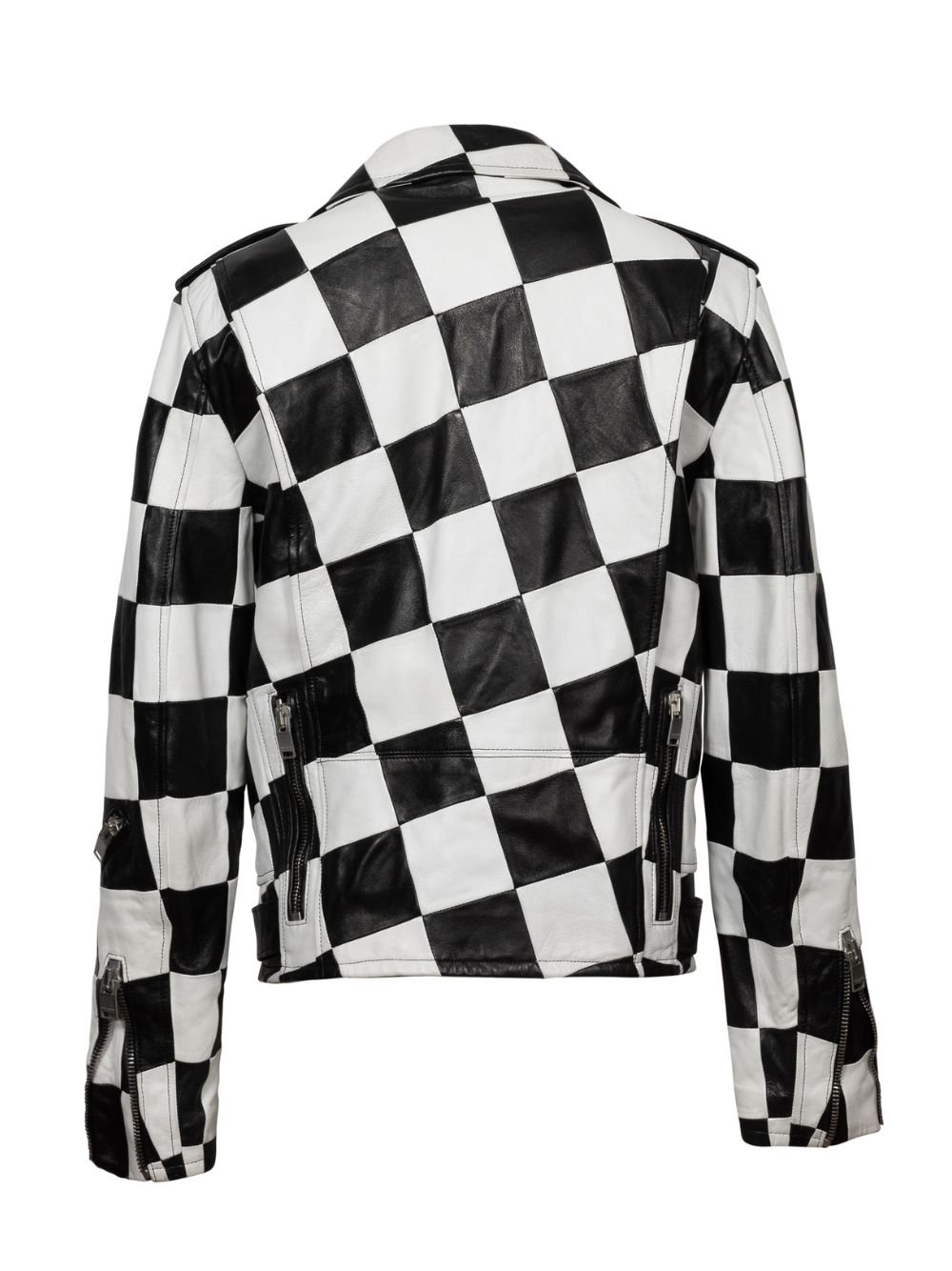 Diamond White Bold and the Beautiful Paris Buckingham Black & White Leather Checkered Jacket