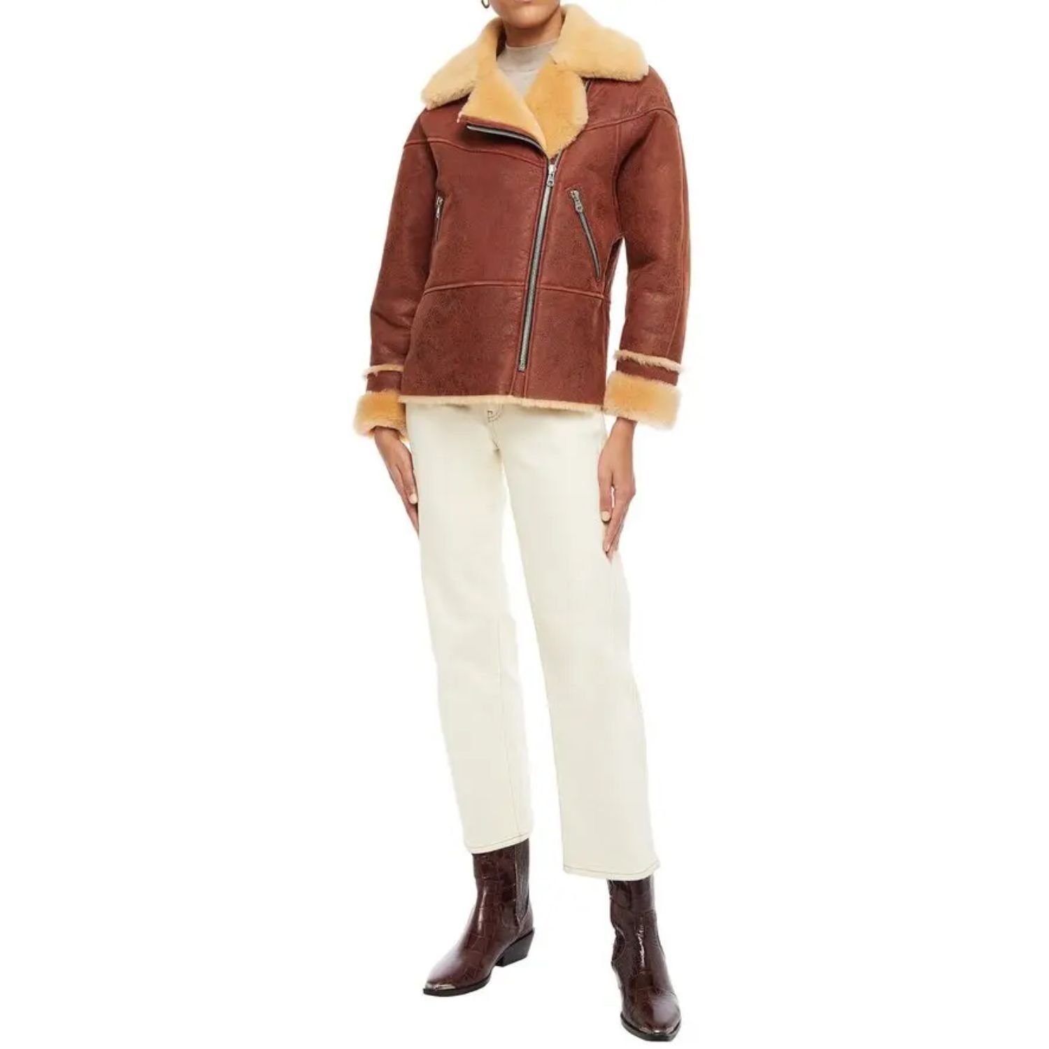 Brittney Classic Brown Soft Shearling Leather Jacket