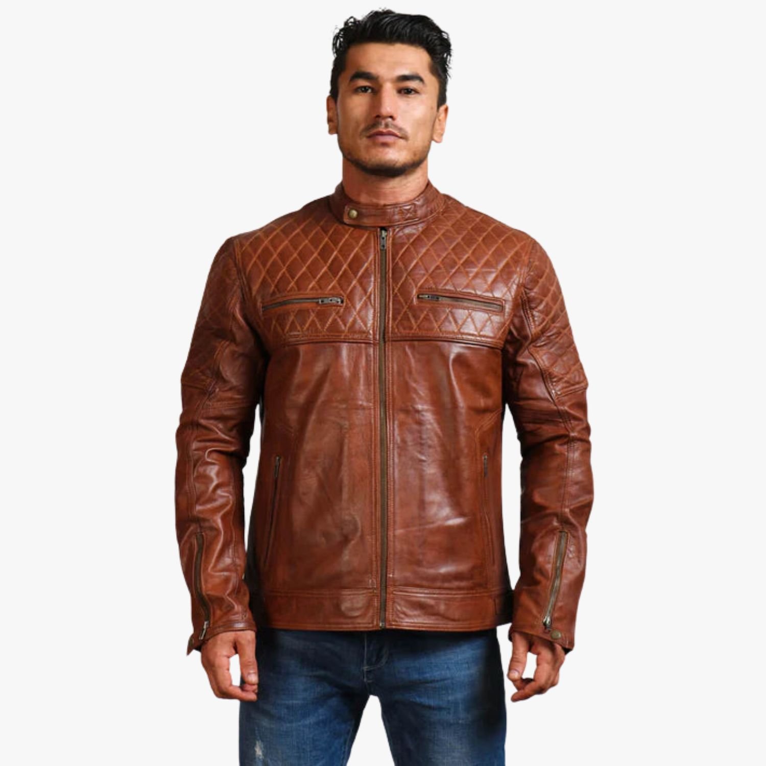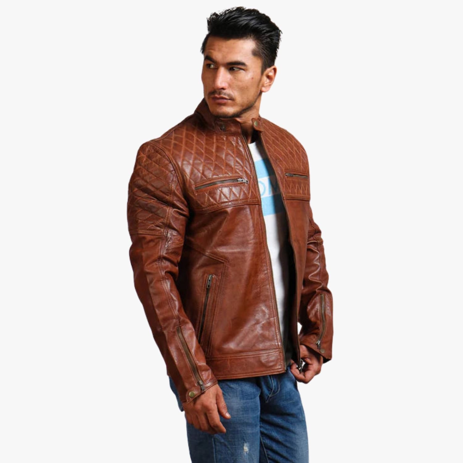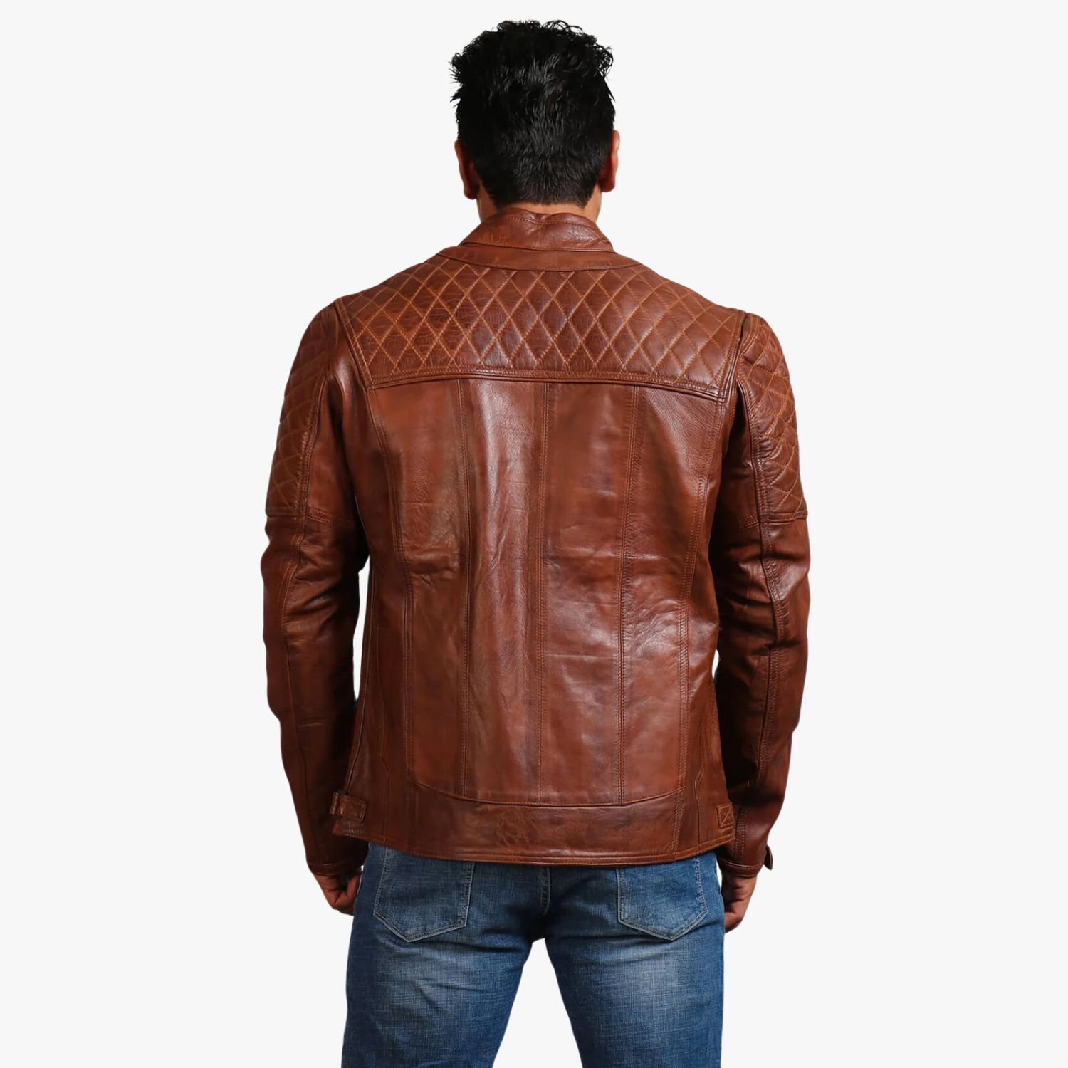 The “Heritage Grid” Quilted Leather Jacket is for the man who appreciates the warmth of traditional tones combined with high-fashion architectural detailing. While black leather is the urban uniform, the Antique Brown finish offers a richer, more organic depth. This curated, distressed shade captures the light and shadows within the diamond quilting, highlighting the craftsmanship and giving the jacket a high-end, vintage-inspired soul.