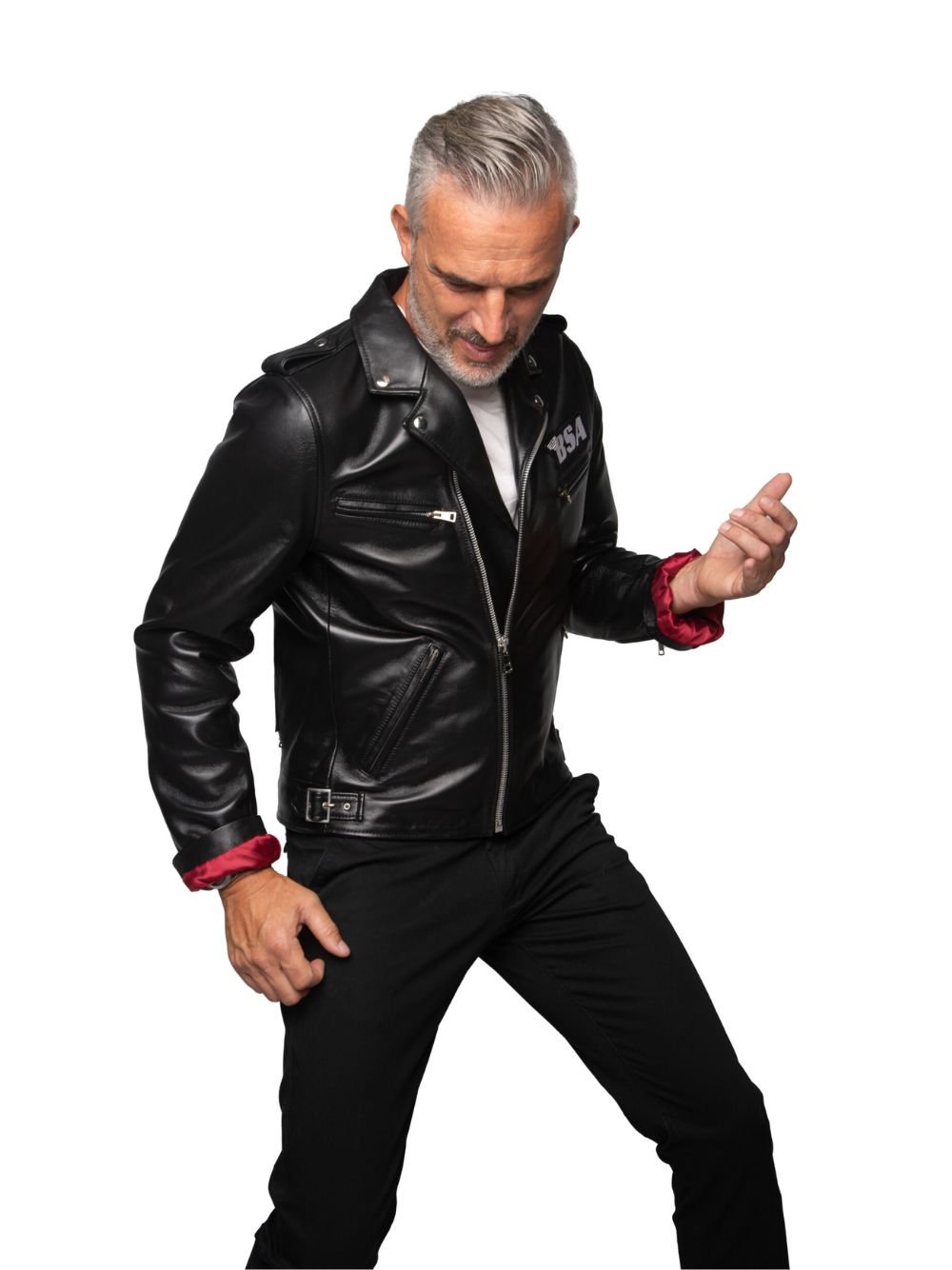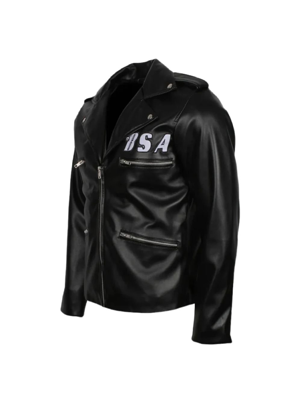 George Michael has one of its own kinds of singing and robe styling. by Movie Jackets Hub is offering the same legend’s jacket with the same look. This BSA George Michael Jacket has striking graphics at the back and decent front look. Overall it has black color, full sleeve, and good looking bend collar style. Strips are placed over the shoulders and backside is printed with “Rockers Revenge” and “BSA” logo which reminds a great legend of singing.