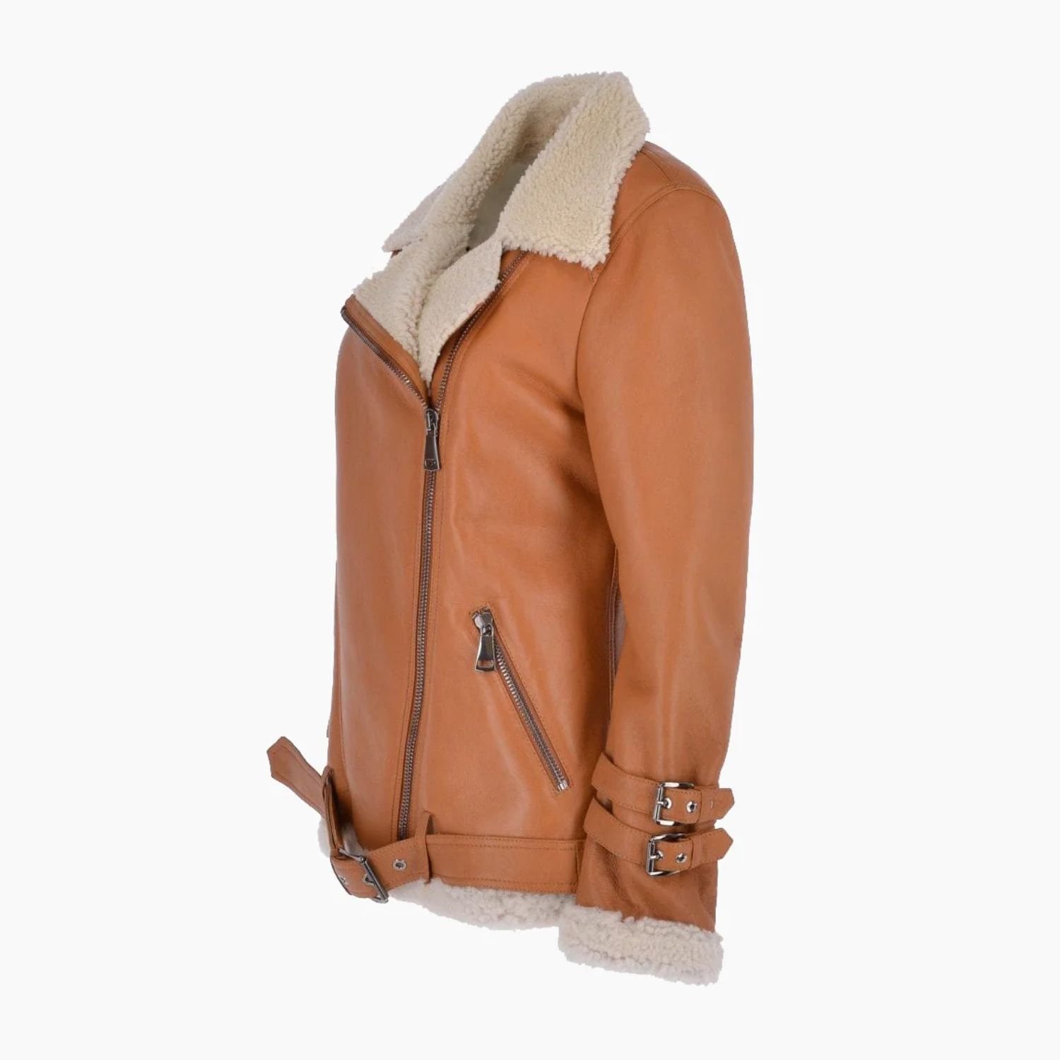 Caitlin Genuine Shearling Style Leather Aviator Jacket