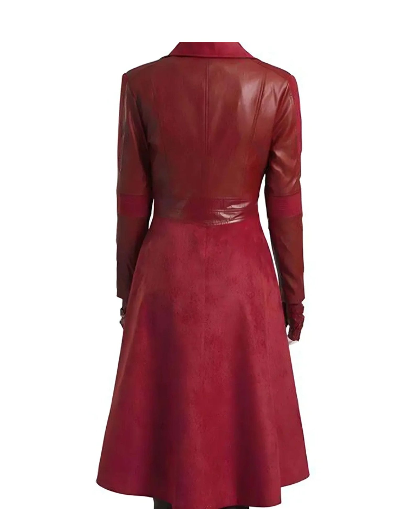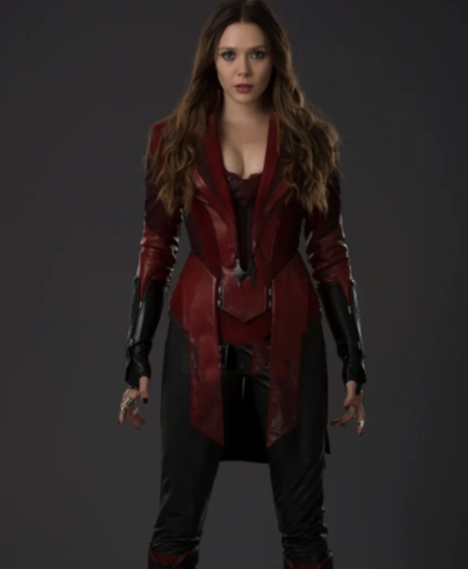 The Elizabeth Olsen Captain America Wanda Maximoff Scarlet Witch Red Long Leather Coat is made of authentic leather cloth of the highest calibre and includes a viscose lining for added protection. It is preferred to wear for casual occasions, parties, clubs, outings, dating, and the winter months.