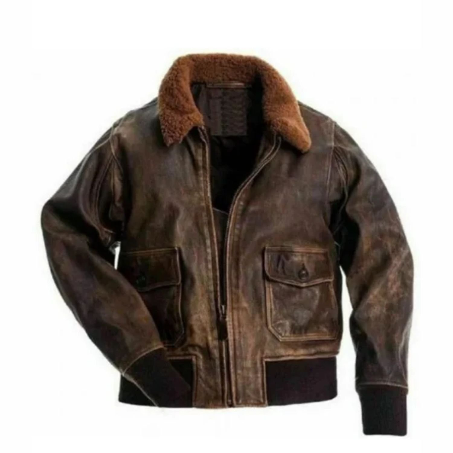 Carter G-1 Distressed Brown Fur Collar Flight Bomber Leather Jacket