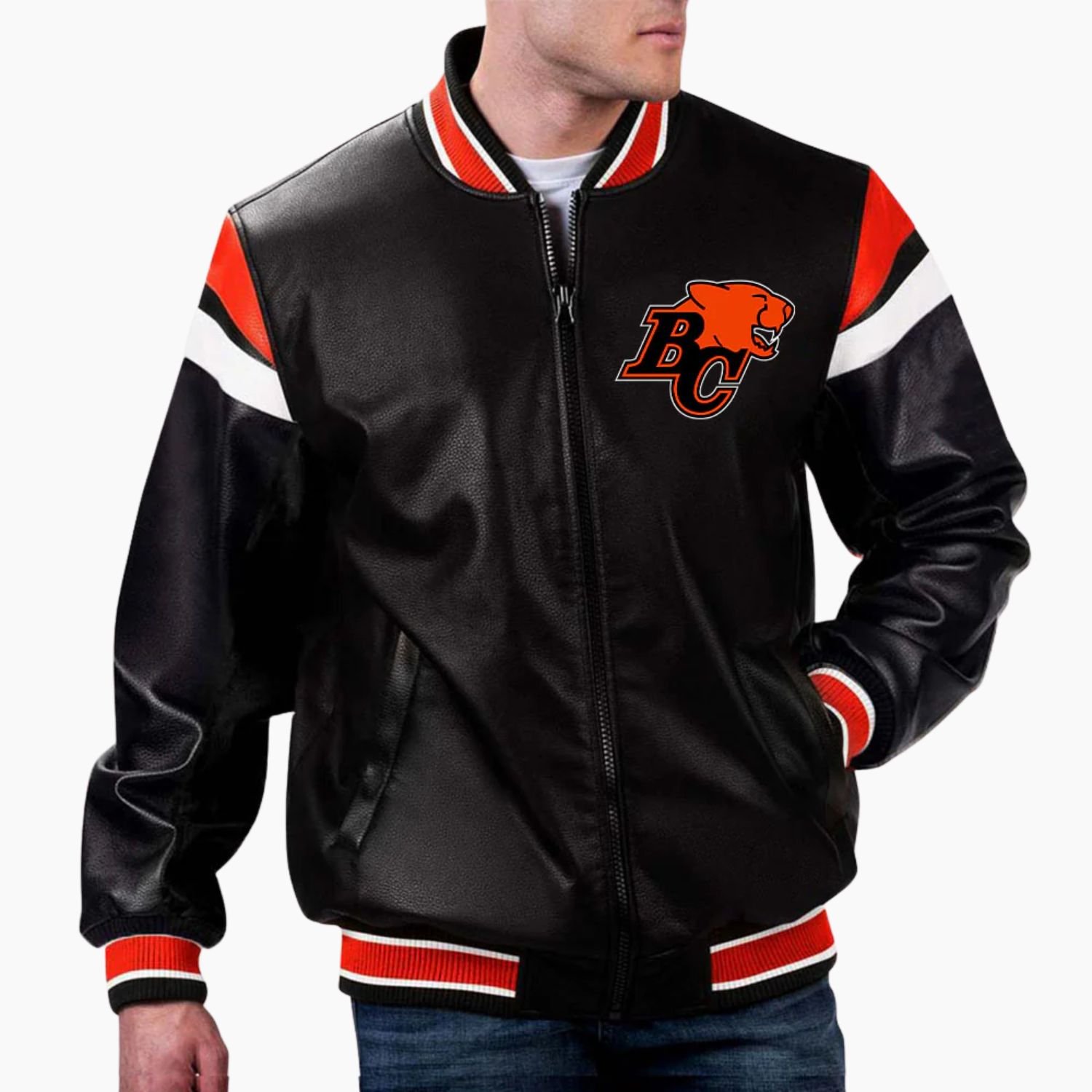 Inspired by CFL team logos showcase your BC Lions pride with authentic detailing. The timeless black color enhances versatility, making it easy to pair with jeans, boots, or other fan gear. Ideal for collectors, sports enthusiasts, and anyone seeking a high-quality high quality jacket varsity jacket, this BC Lions leather jacket by Movie Jackets Hub blends durability, comfort, and team heritage into one stylish piece. Free USA shipping and fast worldwide delivery make it simple to own this must-have fan apparel.