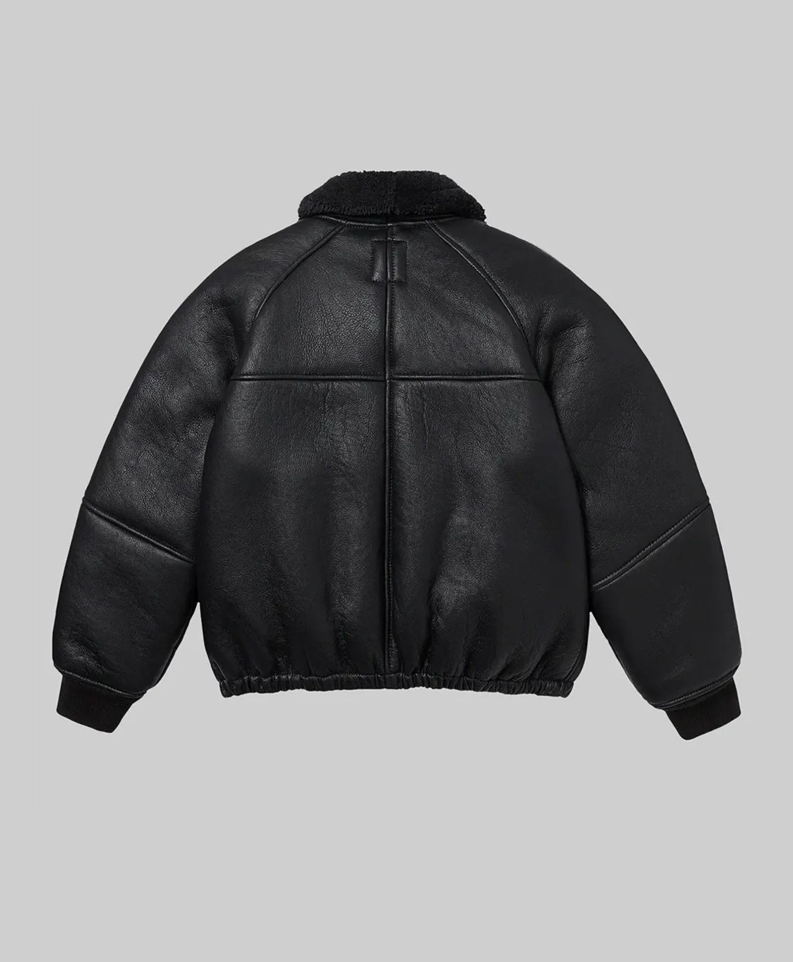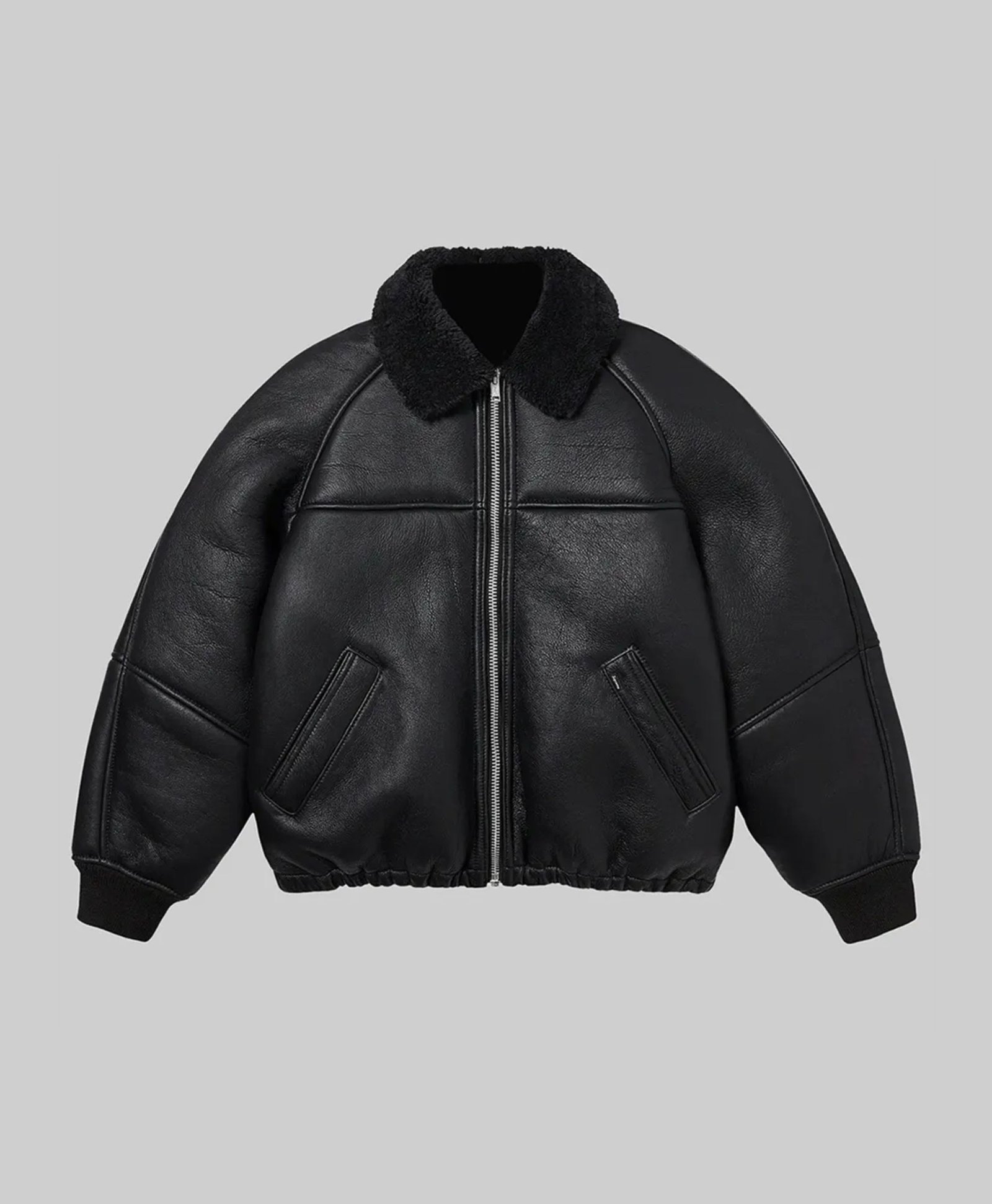 Canadian Singer Charlotte Cardin Oversized Black Leather Aviator Jacket For Sale