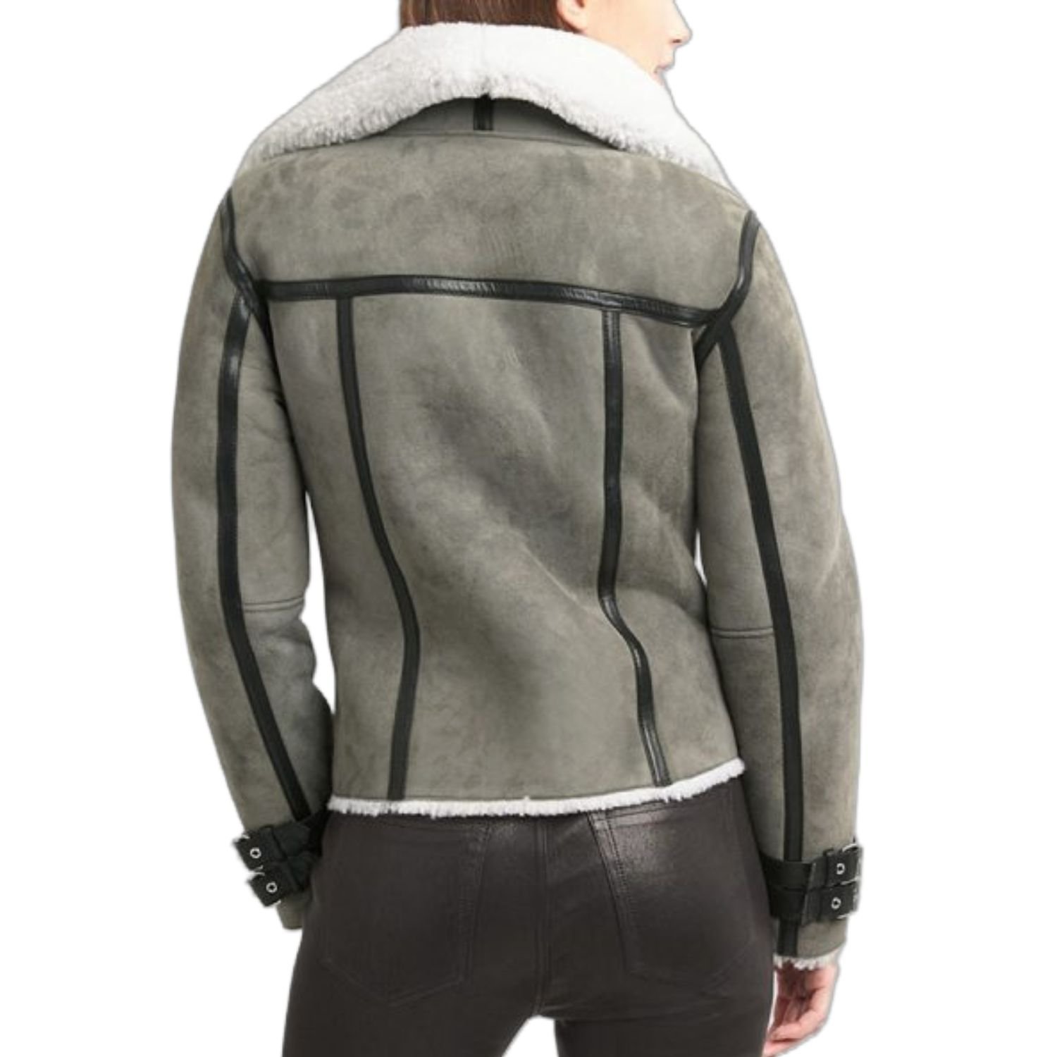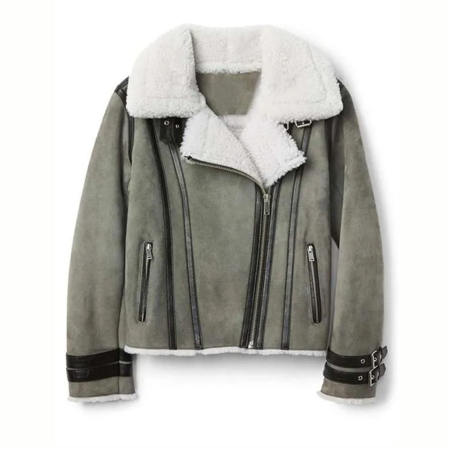 Women soft shearling fur collar grey leather jacket made up of genuine Suede leather. Suede is the most wearer and traditional leather globally because it offers extra warmness and flexibility. Moreover, It provides a satisfying comfort to the garment with sleek white shearling fur fabric stitches inside it. Consequently, it will be the best for your winter and keeps you calm and warm. Additionally, It also contains a relaxable shearling collar to enhance the smoothness level of the womens shearling jacket. The grey leather jacket accommodates the YKK branded front zipper closure. You can carry it with any costume. It’s amazingly forgiving and adds a delightful silhouette to whatever you wear under, and a jacket is great for any occasion.