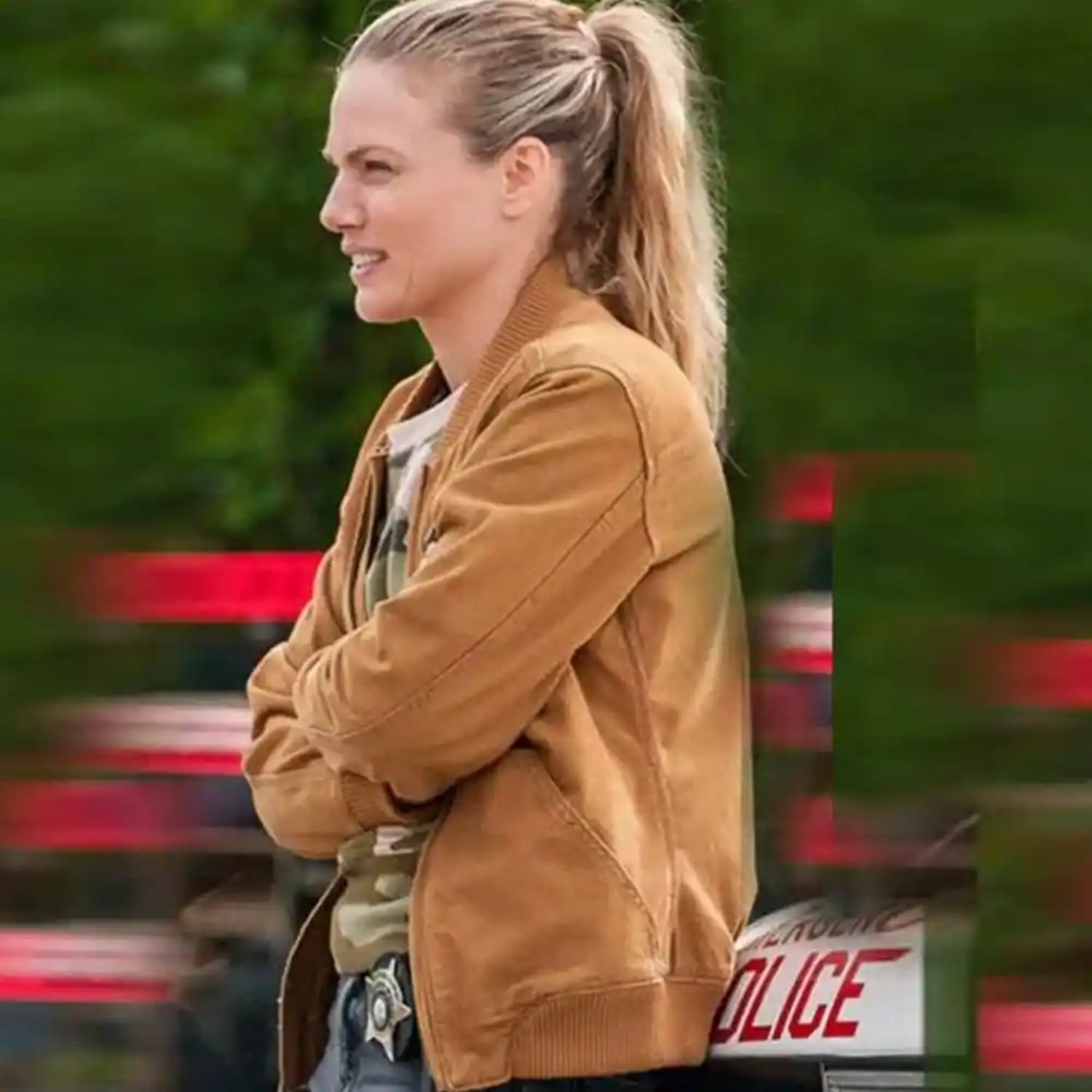Tracy Spiridakos Chicago P.D. Season 07 EP07 Hailey Upton Brown Bomber Jacket