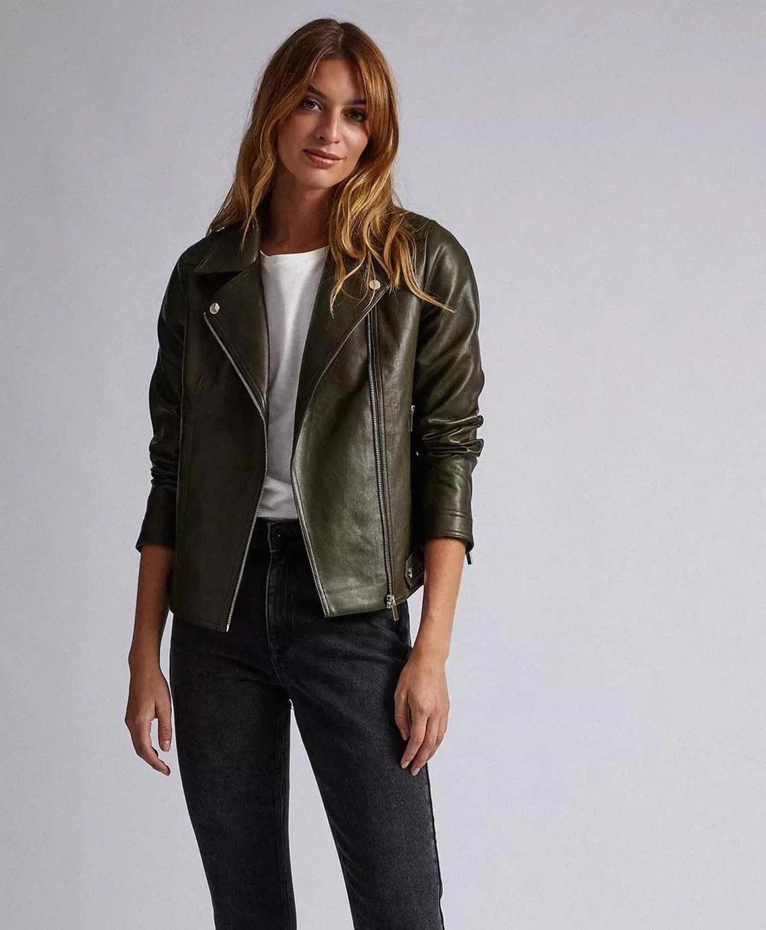 Unleash your inner icon with the definitive silhouette of cool. Our Classic Biker Leather Jacket is a masterclass in edge and elegance, designed for the woman who lives life in the fast lane. This isn’t just outerwear it’s an attitude. Combining the raw energy of traditional motorcycle gear with the refined feel of premium sheepskin, it’s the only leather jacket you’ll ever truly need.