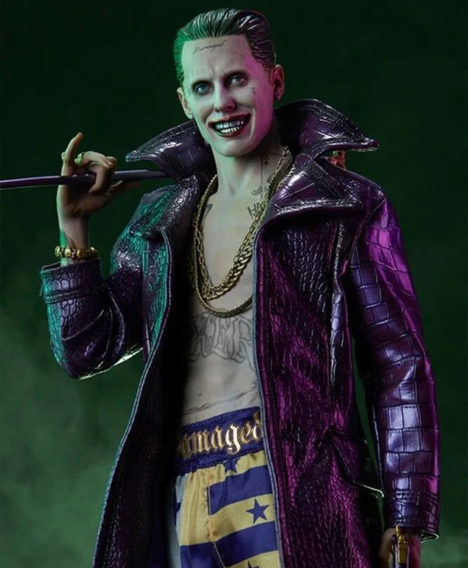 Crocodile Suicide Squad Joker Purple Leather Coat
