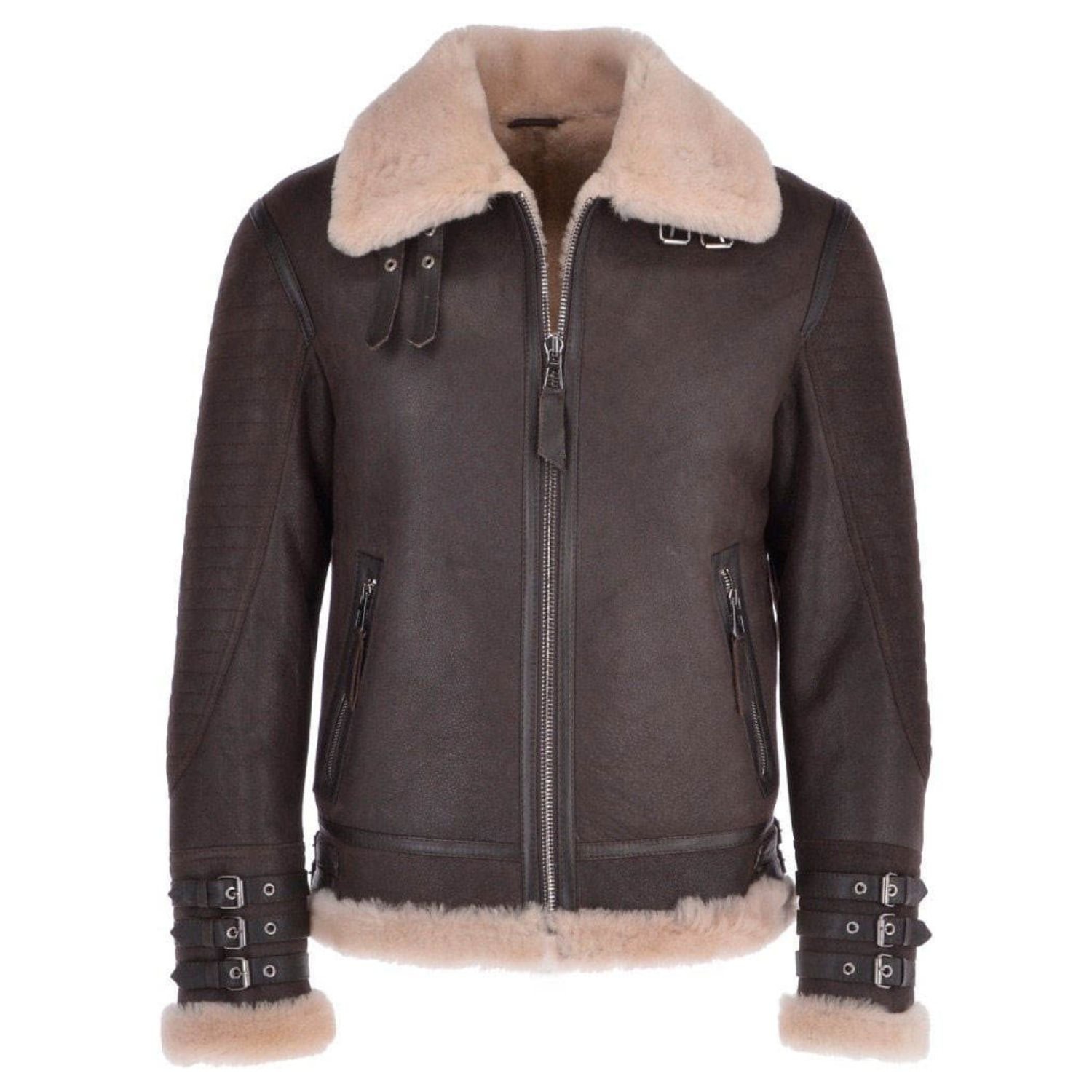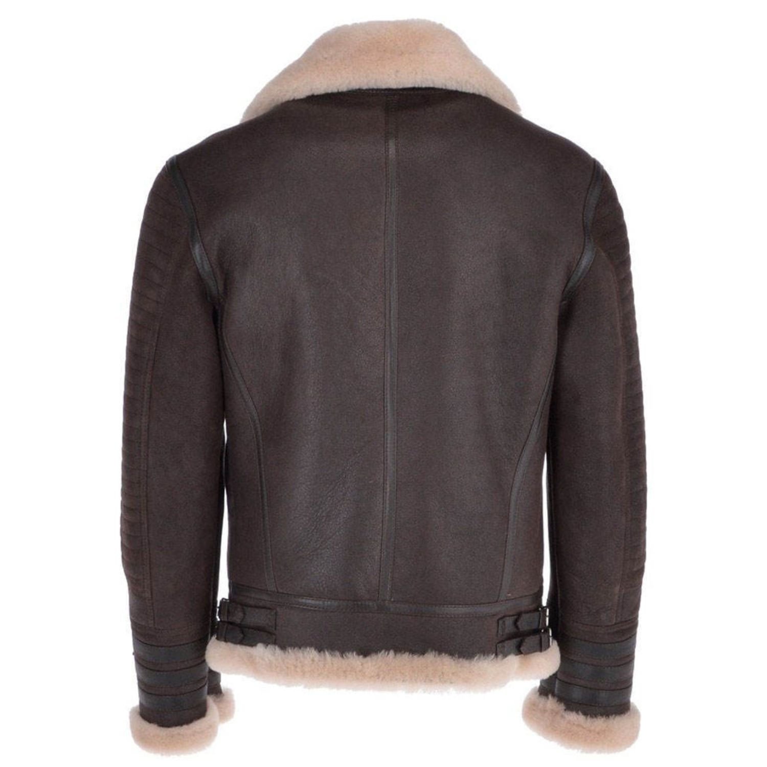 Men David Brown Flying B3 Bomber Shearling Fur Leather Jacket