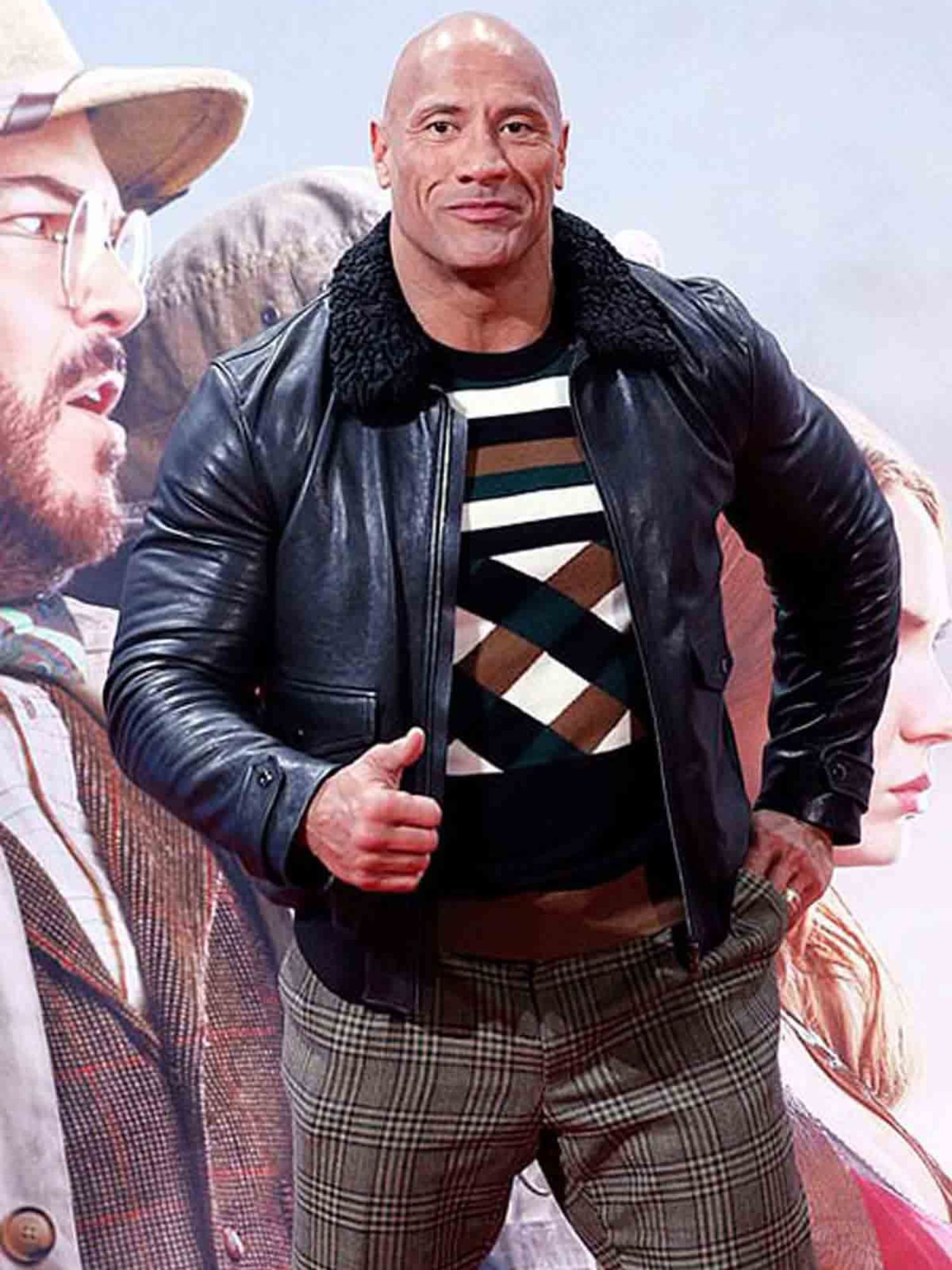 Inspired by Dwayne Johnson’s stunning look at the Jumanji World Premiere in Berlin, this Designer Black Leather Jacket brings rugged sophistication and masculine charm to your wardrobe. Crafted from 100% real leather, it delivers superior durability and style, making it the perfect piece for men who love a bold yet refined aesthetic.