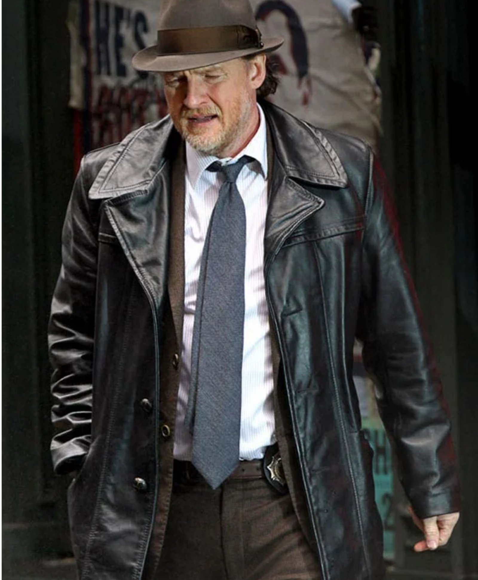 Donal Logue Gotham Black Leather Coat