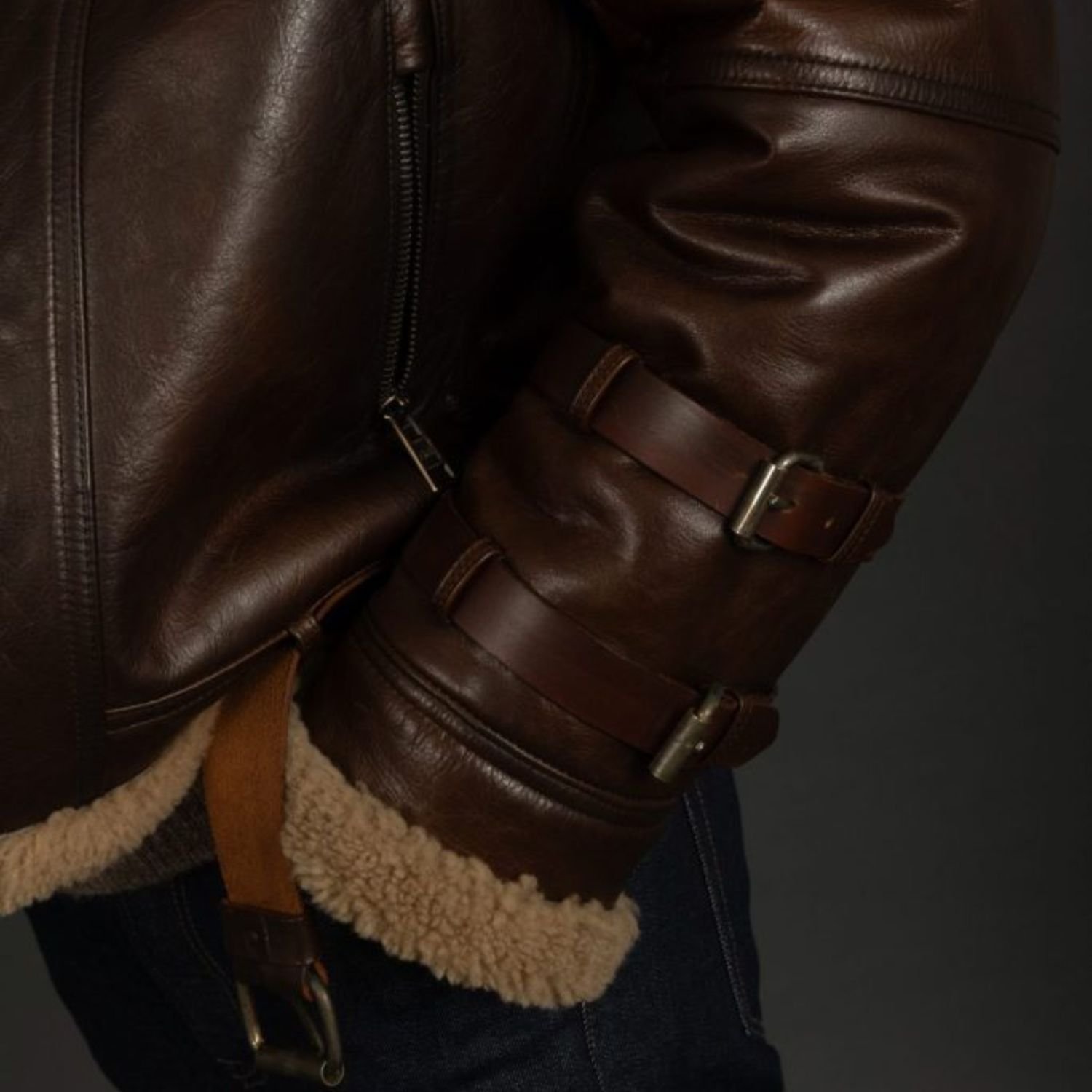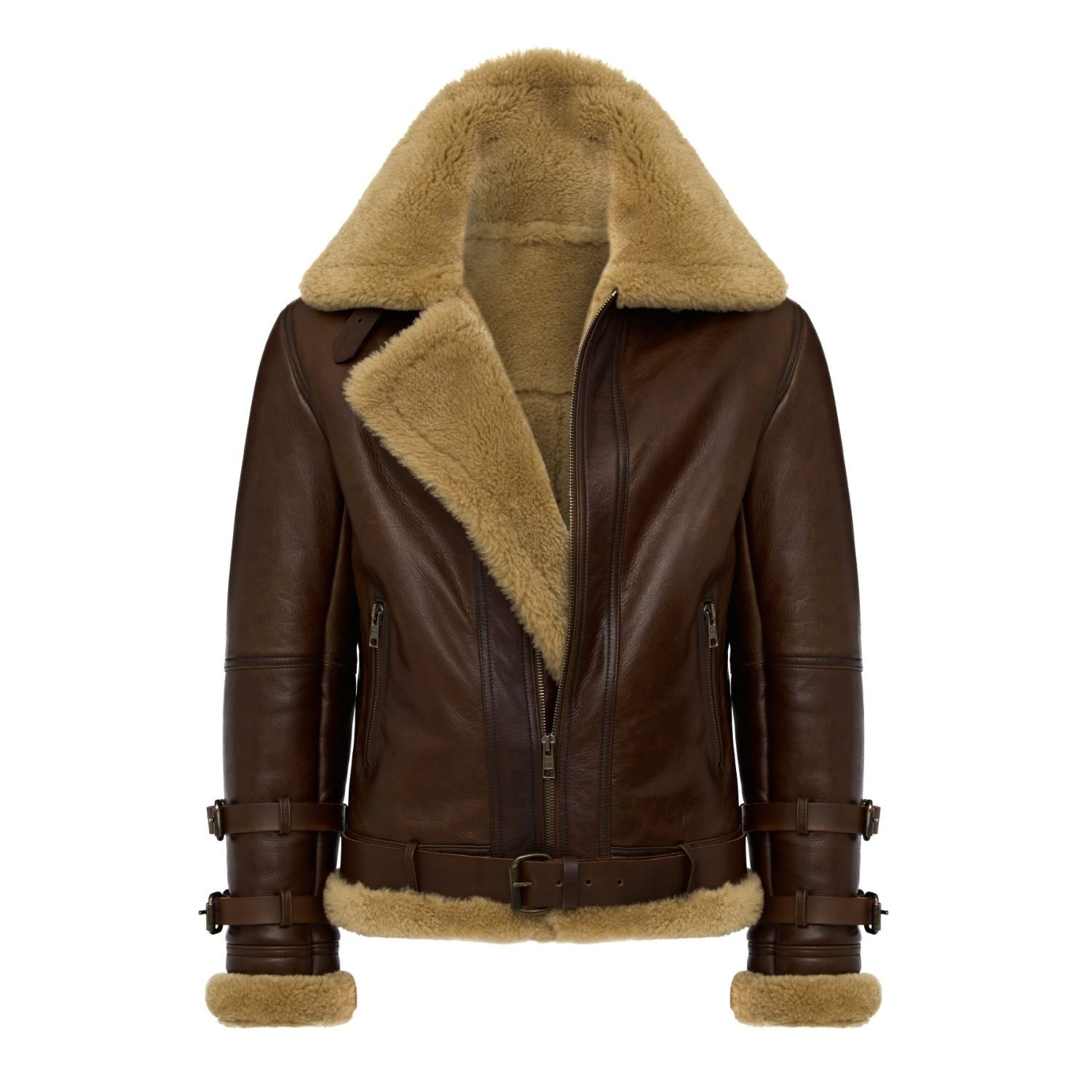 Keep your style game on point while staying warm this winter with this Mens Aviator RAF B3 Shearling Leather Bomber Jacket. This jacket is a composition of real sheepskin leather and inner shearling fur. It is perfect for keeping you cozy and looking good in casual gatherings. With a front YKK zipper closure, shirt style collar, open hem cuffs, and brown color, this bomber jacket has everything you need to stay stylish all season long. Grab this jacket now and wear it for a chic casual appearance at events.