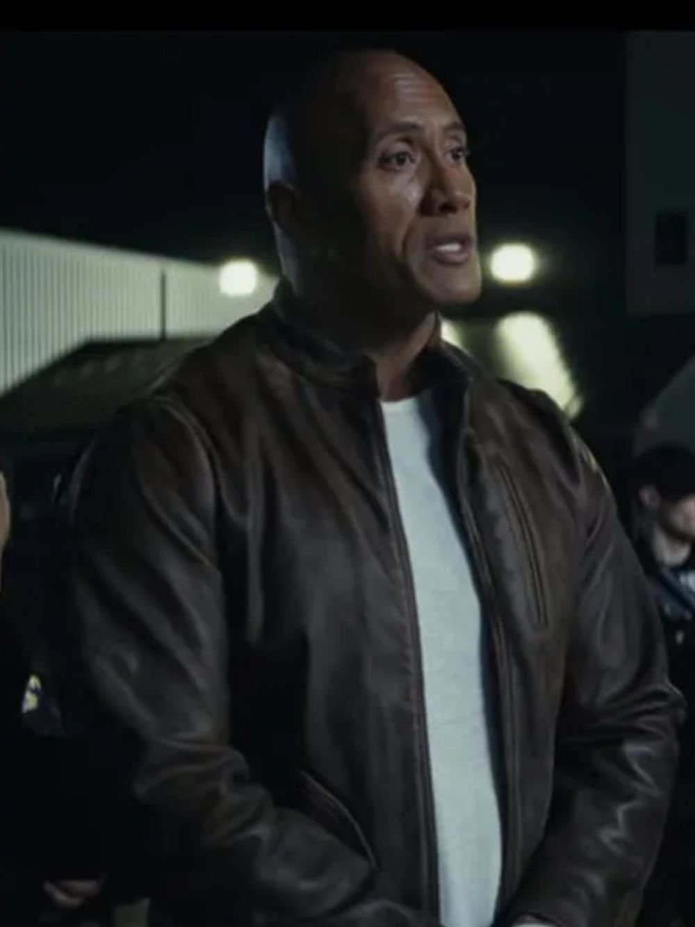 Dwayne Johnson Rampage Davis Okoye Brown Leather Jacket
