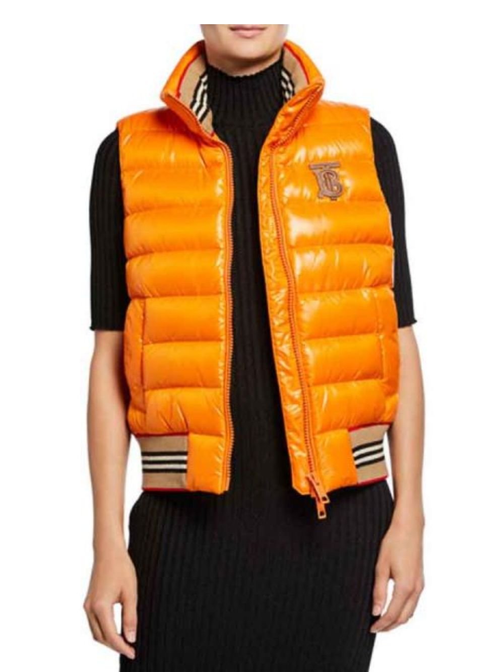 Elizabeth Gillies Dynasty Season 03 Fallon Carrington Orange Parachute Puffer Sleeveless Jacket is a perfect match for people with an aesthetic taste in fashion and who love to mark their fashion statements. This Puffer Vest has a quilted pattern filled with polyester fabric to keep you warm and comfortable. This lightweight outfit is made up of high-quality parachute fabric, and the inner is lined with soft viscose fabric to ensure its durability and comfortability. Moreover, the other features include a stand-up style collar and front zipper closure to give a formal look and make you feel free.