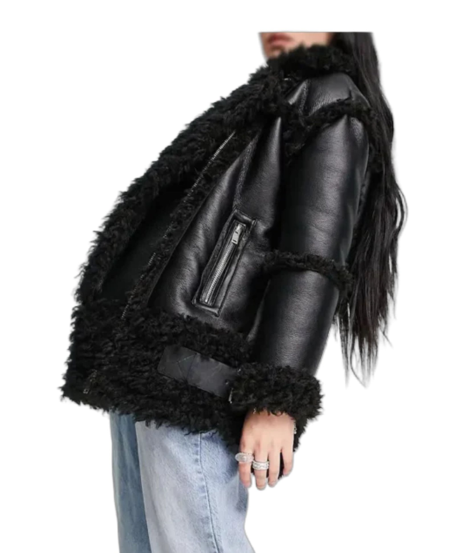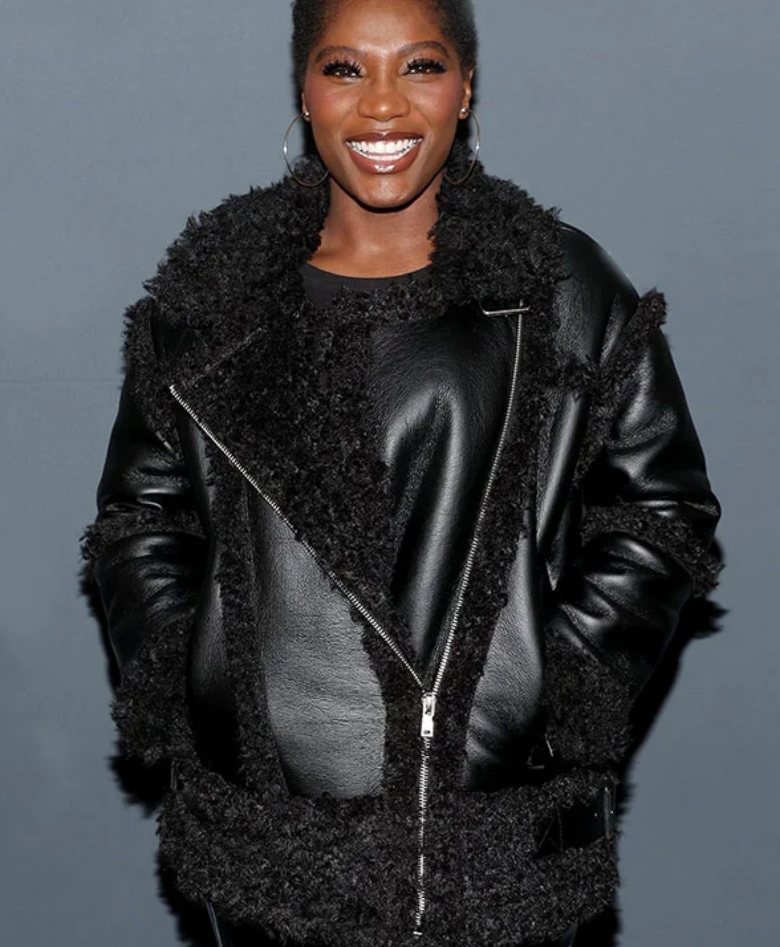 Trina Film Earth Mama 2023 Doechii Black Leather Fur Jacket