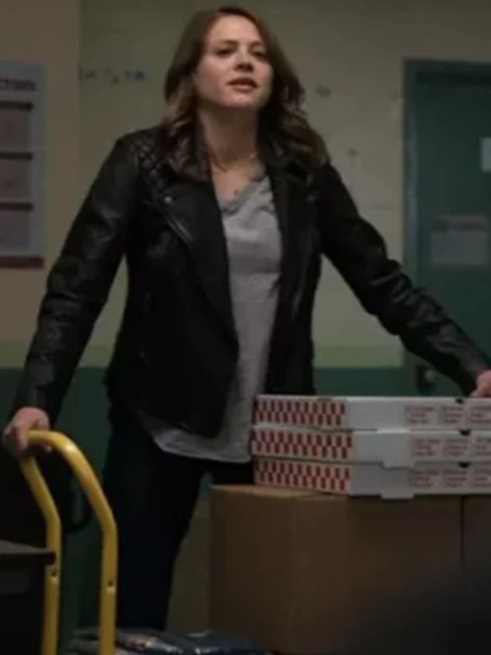 Olivia Luccardi portrayed the character of Officer Brandy Quinlan in East New York. Olivia Luccardi is a talented American actress known for portraying characters in various films and television shows. In the context of East New York, she brings her unique skills to breathe life into a feeling that resonates with the struggles and triumphs of the community. Officer Brandy Quinlan donned this biker black jacket made with genuine leather and lined internally with viscose. The mixes of these high-quality fabrics provide the wearer with an ultimate level of relaxation and warmth. This biker jacket has an asymmetrical zipper fastening, which makes it effortless to take it on and off, and the notch style collar further adds elegance and sensibility to the jacket. The belted waistline lets you make your desired adjustments. The total-length sleeves with Ykk zipper closure exude bold sensations, and you can easily keep the zipper according to your needs. Two side waist compartments provide plenty of room to keep your stuff safe and secure. Place your order to secure your purchase in advance.