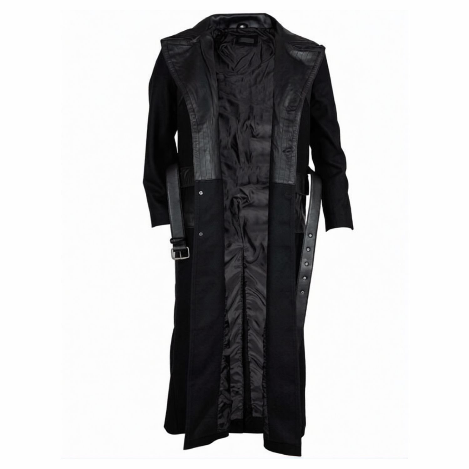 The material is used for Edward James Olmos Blade Runner Leather Coat is original genuine leather material. Interior the leather it has soft lining inside which makes its design amazing and wonderful. Blade Runner Gaff Trench Coat has Swaggered Lapel style of the collar which makes it more attractive. It has full sleeves with open hem cuffs which keep to you more relaxable in winter. It has the greatest design of front side like open front style with belt fastening which makes it more classic.