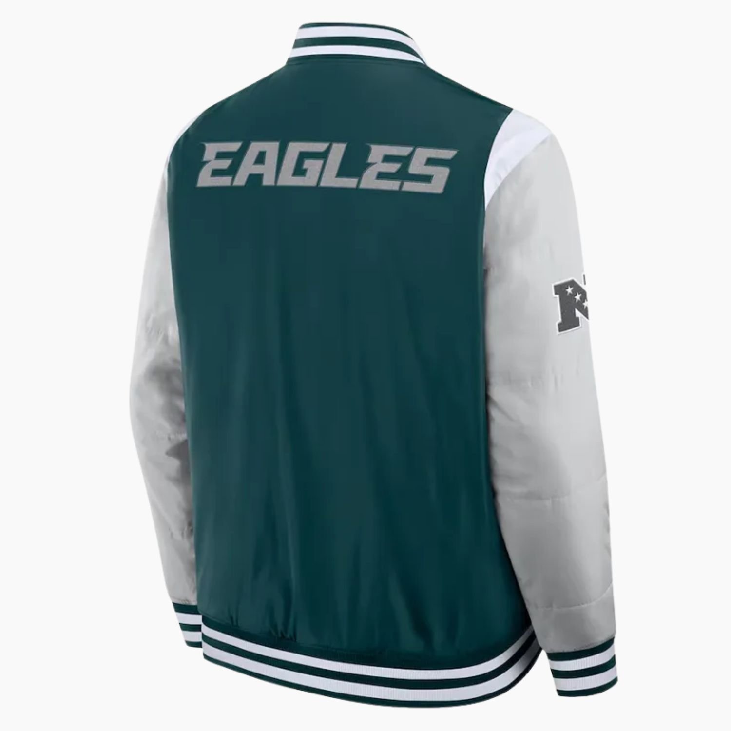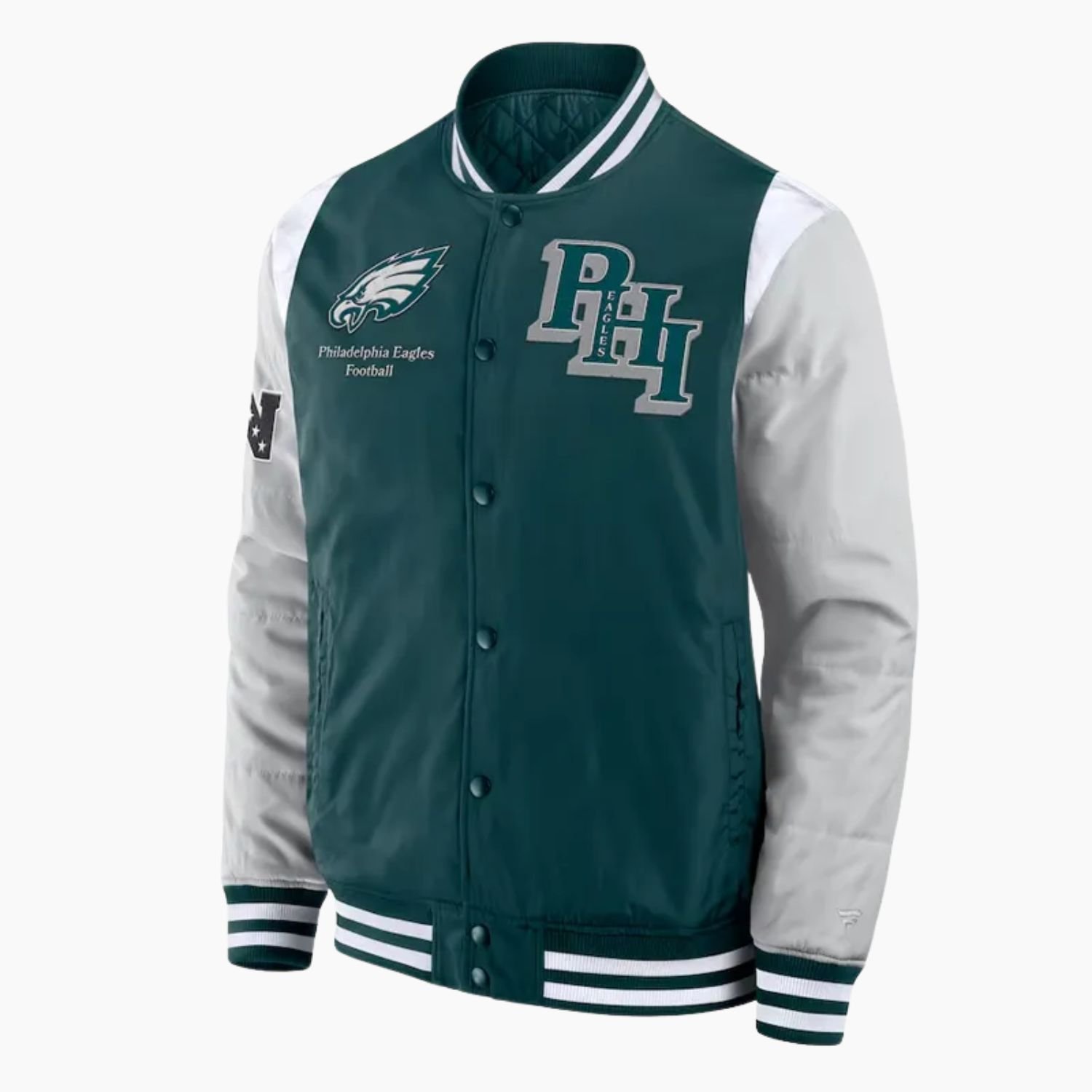 Fly high with the Elements Elite Philadelphia Eagles Green Satin Jacket a sleek, game-day essential built for true Eagles fans. Crafted from premium satin fabric, this jacket combines a smooth, lightweight feel with the bold confidence that defines Philadelphia football.