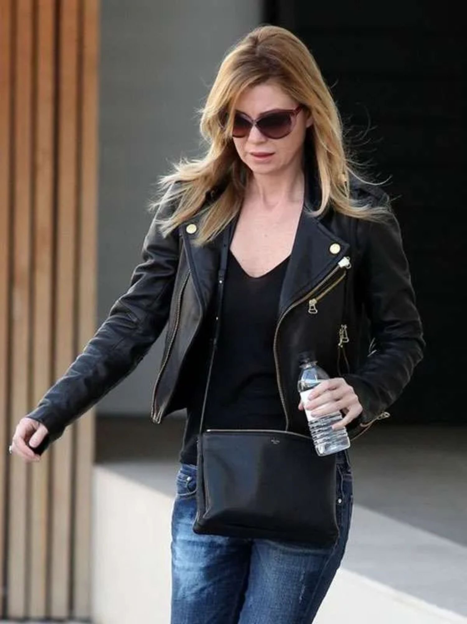 The morning sun reflects off the glass towers of a bustling city center as she maneuvers through the crowd with a focused, understated authority. She doesn’t need to chase the loudest trends; she anchors her style in pieces that feel as sharp as her intellect. Inspired by the sophisticated, grounded, and perpetually polished “off-duty” style of Ellen Pompeo, this Black Leather Jacket is a masterclass in “urban refinement.” Known for her ability to pair a high-fashion edge with effortless, everyday basics, Ellen’s wardrobe is a blueprint for the woman who finds power in a clean silhouette. This Ellen Pompeo Black Leather Jacket is for the woman who demands a professional-grade look that transitions seamlessly from a high-stakes morning meeting to a quiet evening in the city.