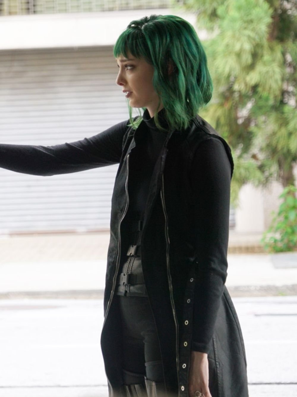 Emma Dumont The Gifted Sleeveless Black Coat
