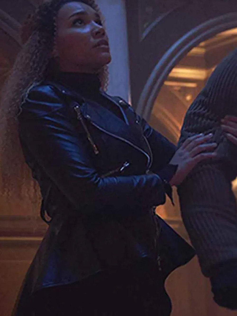 Emmy Raver Lampman TV Series The Umbrella Academy Allison Hargreeves Black Peplum Leather Jacket