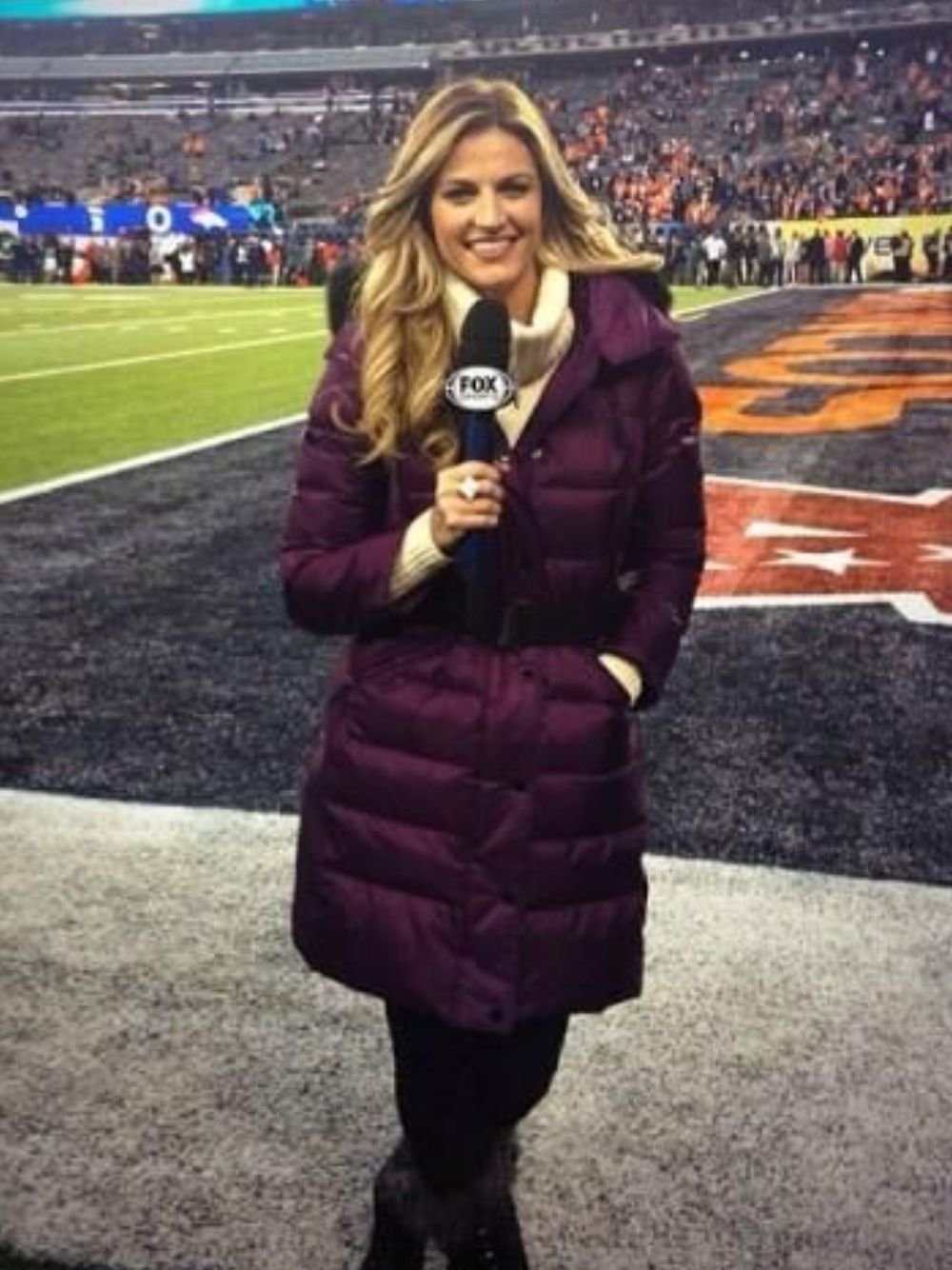 Purchase Erin Andrews Purple Long Puffer Coat For Men and Women On Sale